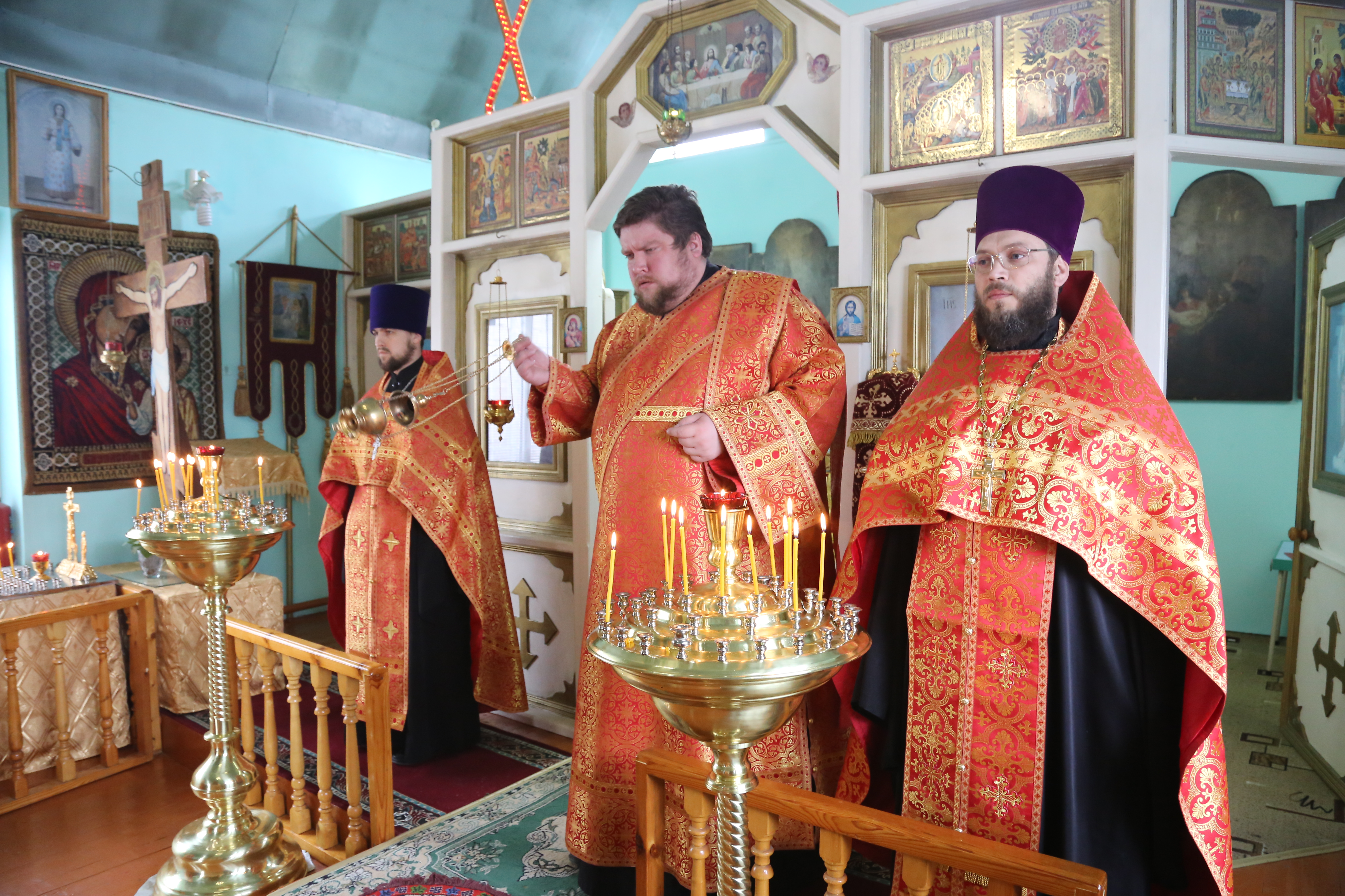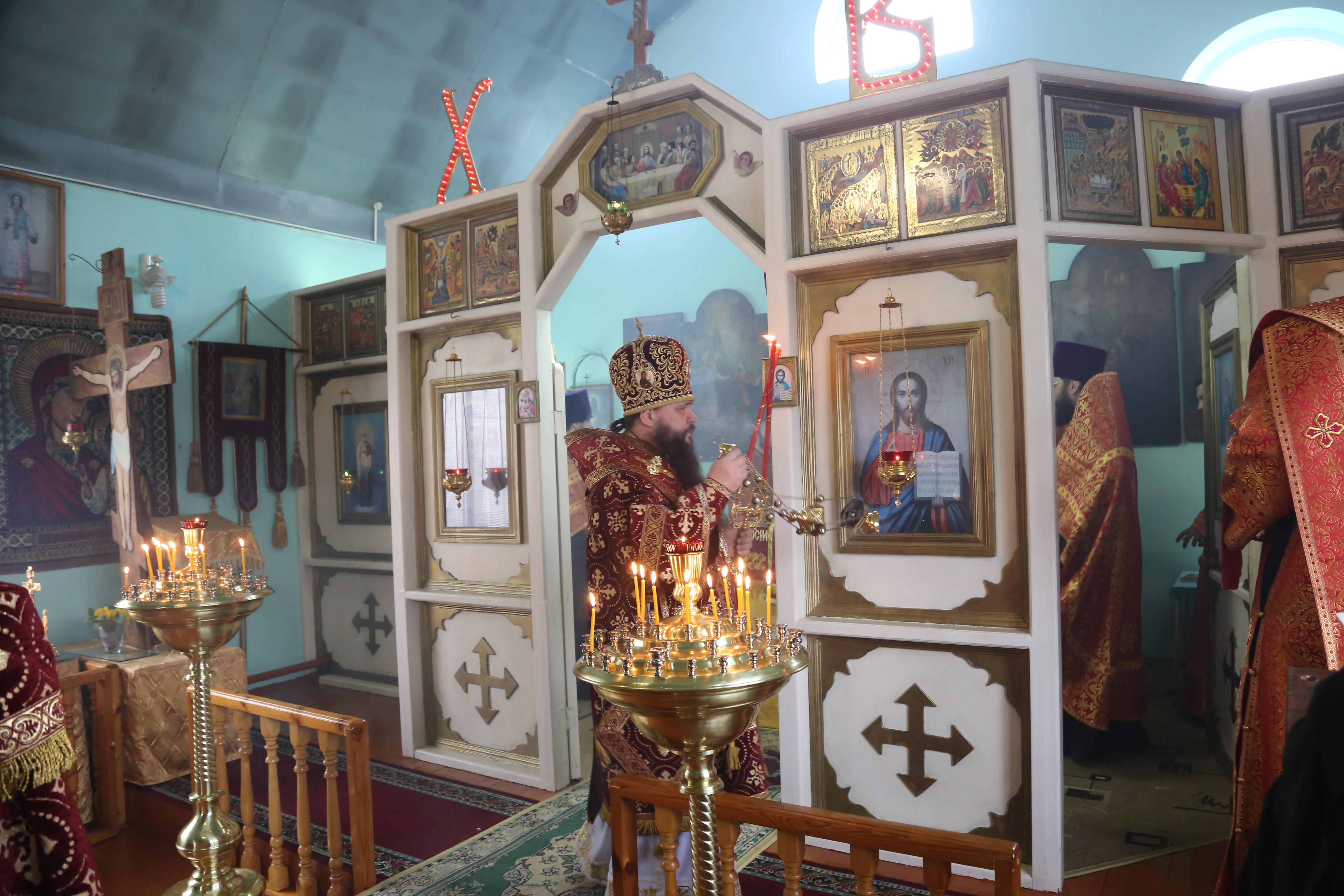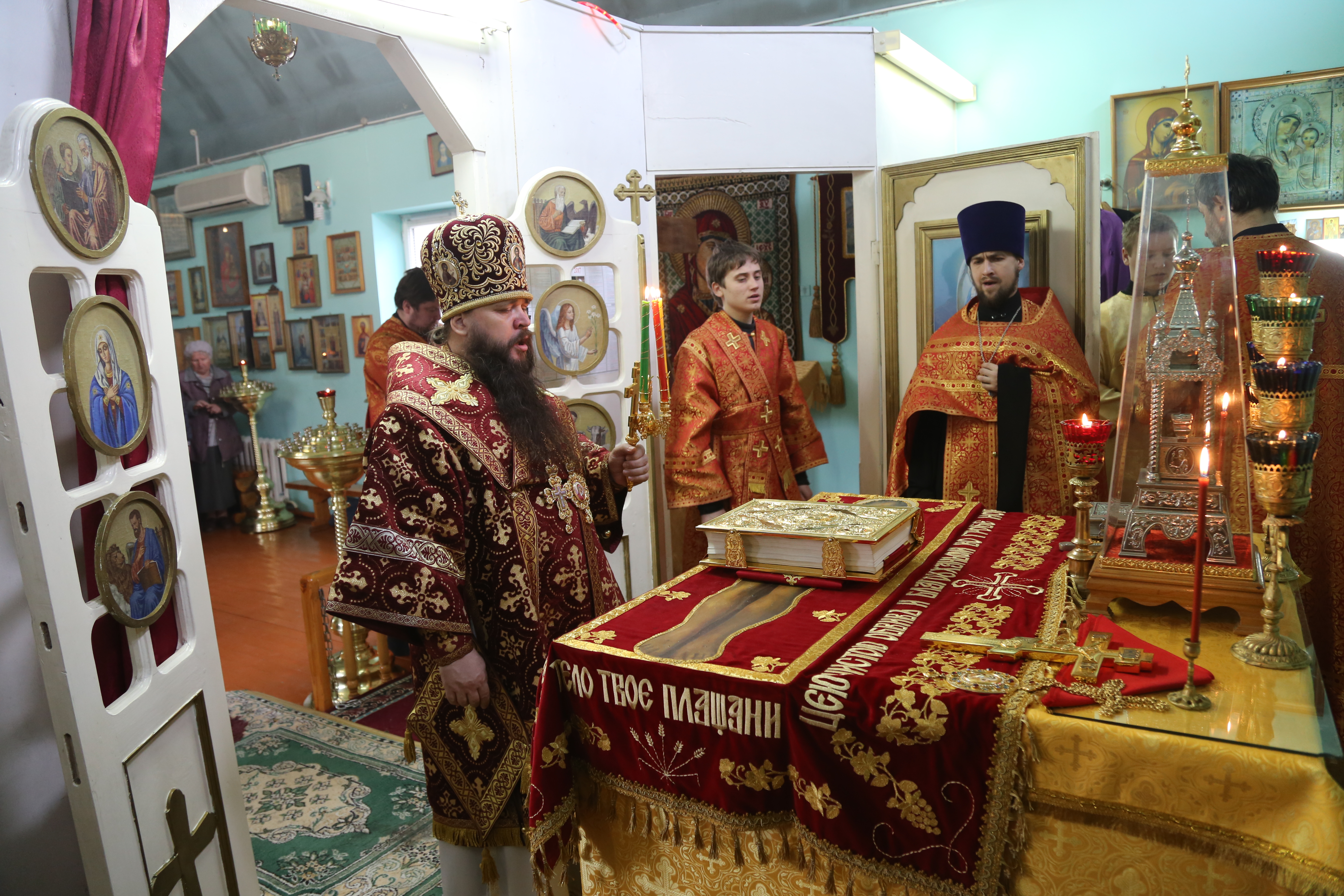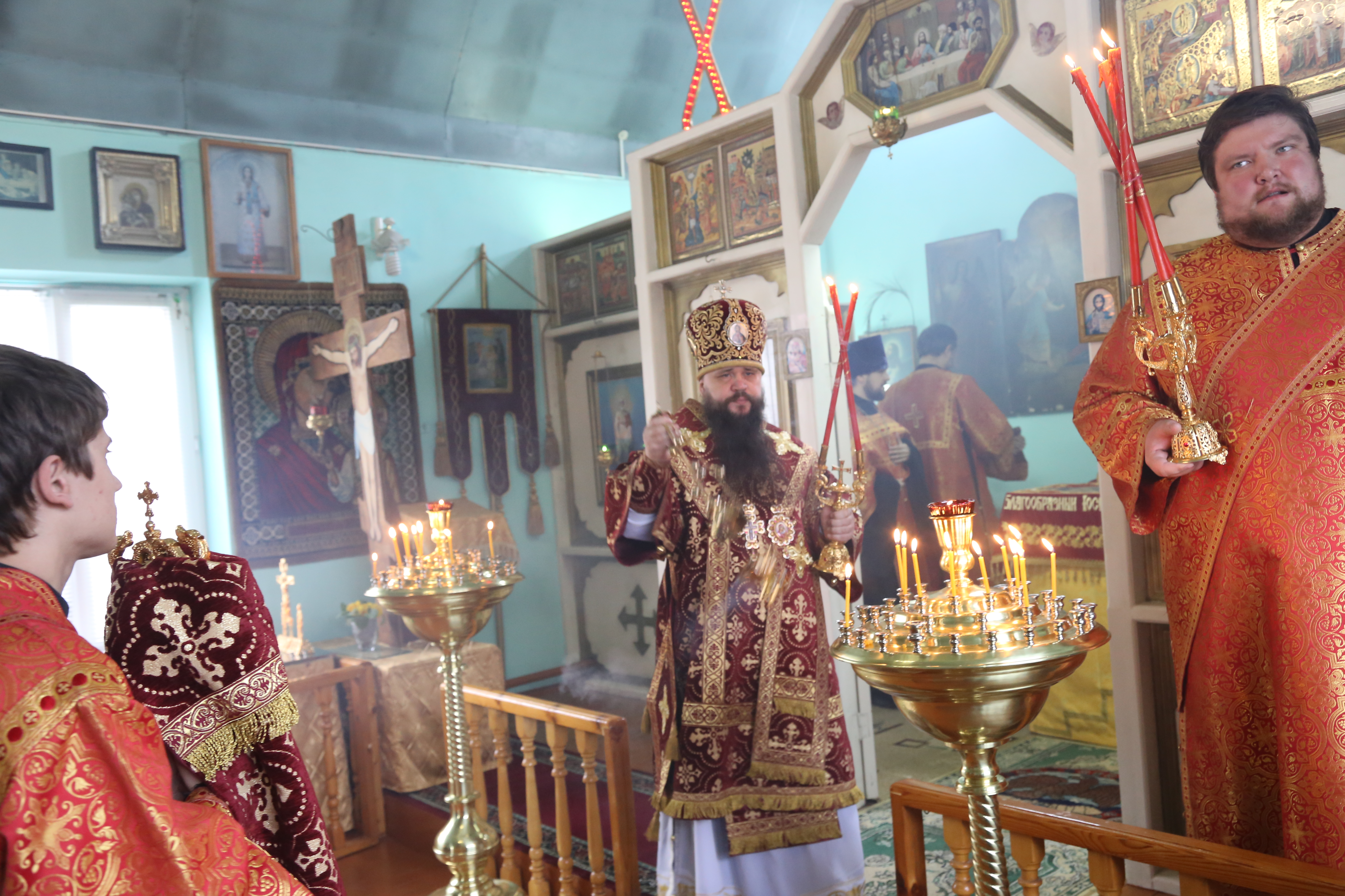 Его Преосвященству сослужили секретарь епархии иеромонах Иоанн (Анисимов), благочинный Махачкалинского церковного округа иерей Виталий Тарасов, настоятель храма в честь преподобного Серафима Саровского в Избербаше иерей Олег Шальнов, клирики Махачкалы.
