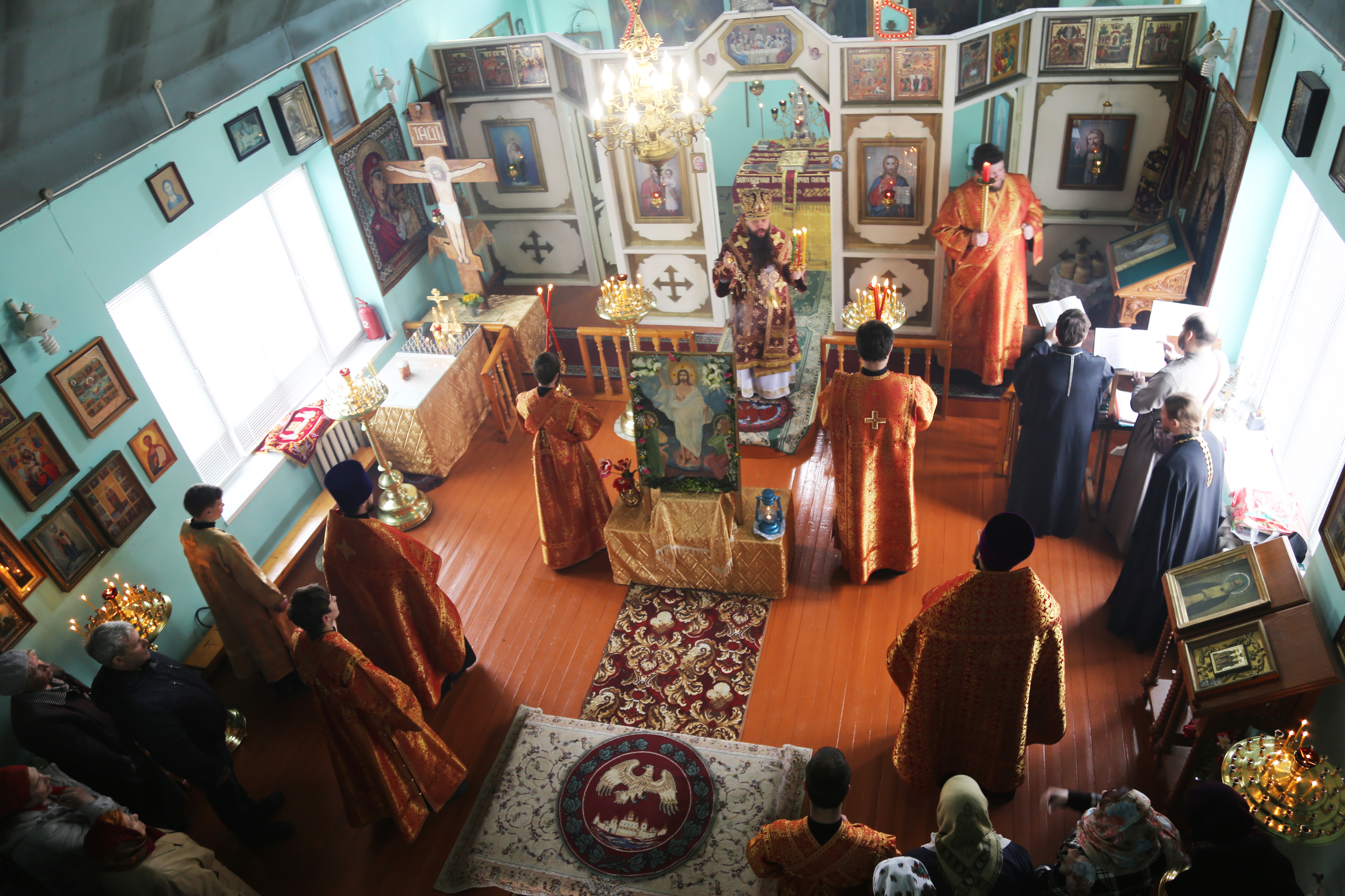 В храме в честь преподобного Серафима Саровского правящий архиерей совершил пасхальное чинопоследование вечерни, утрени и первого часа.