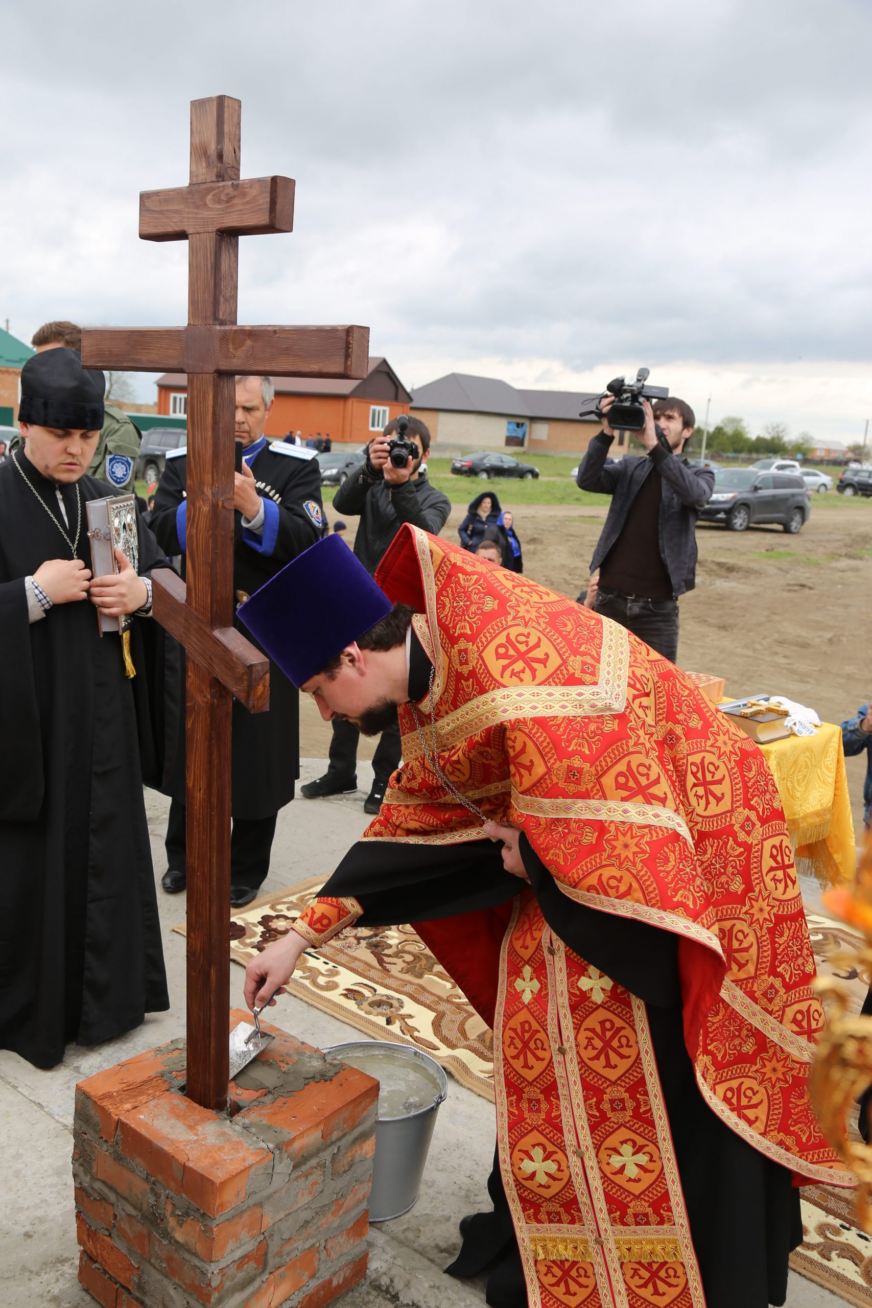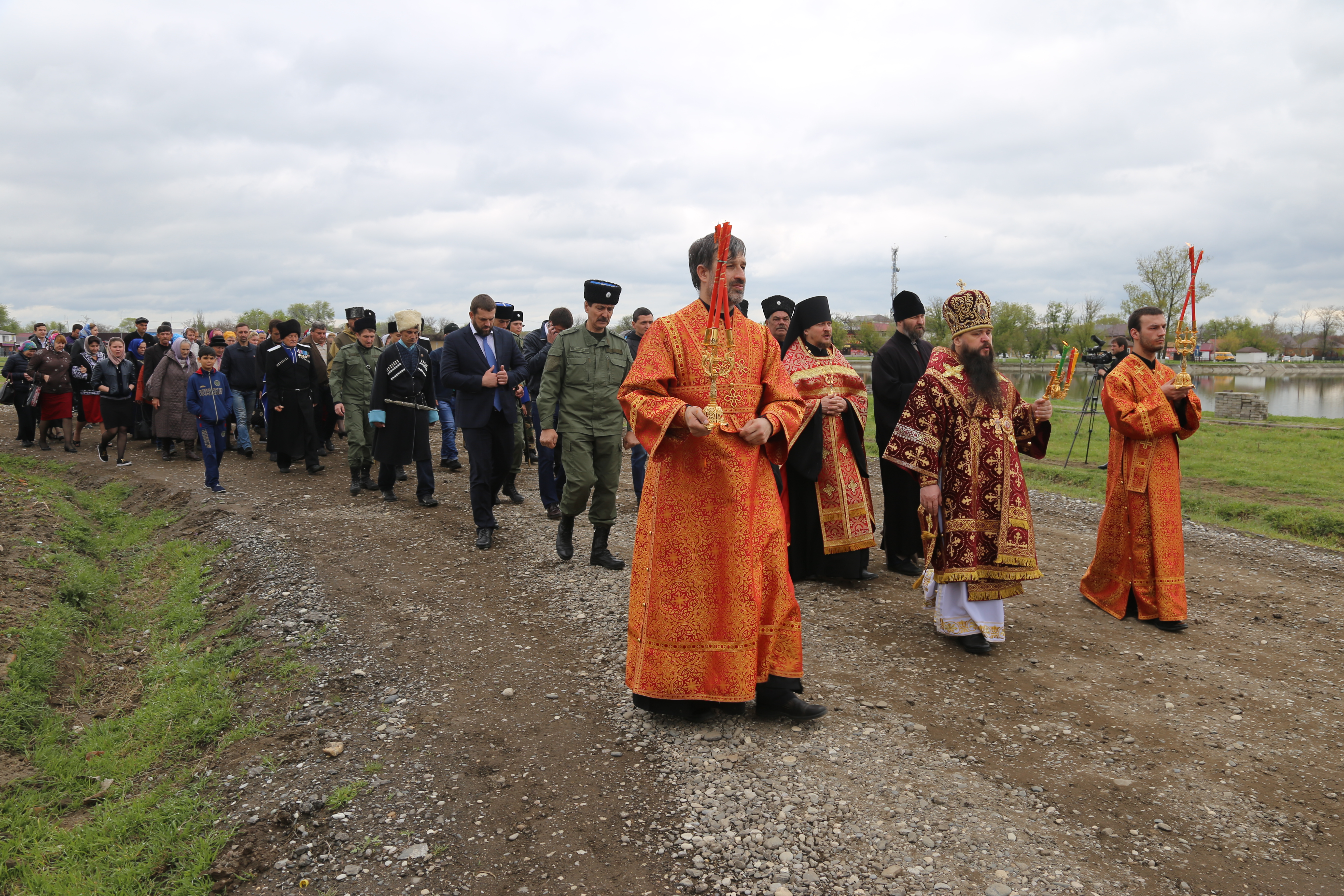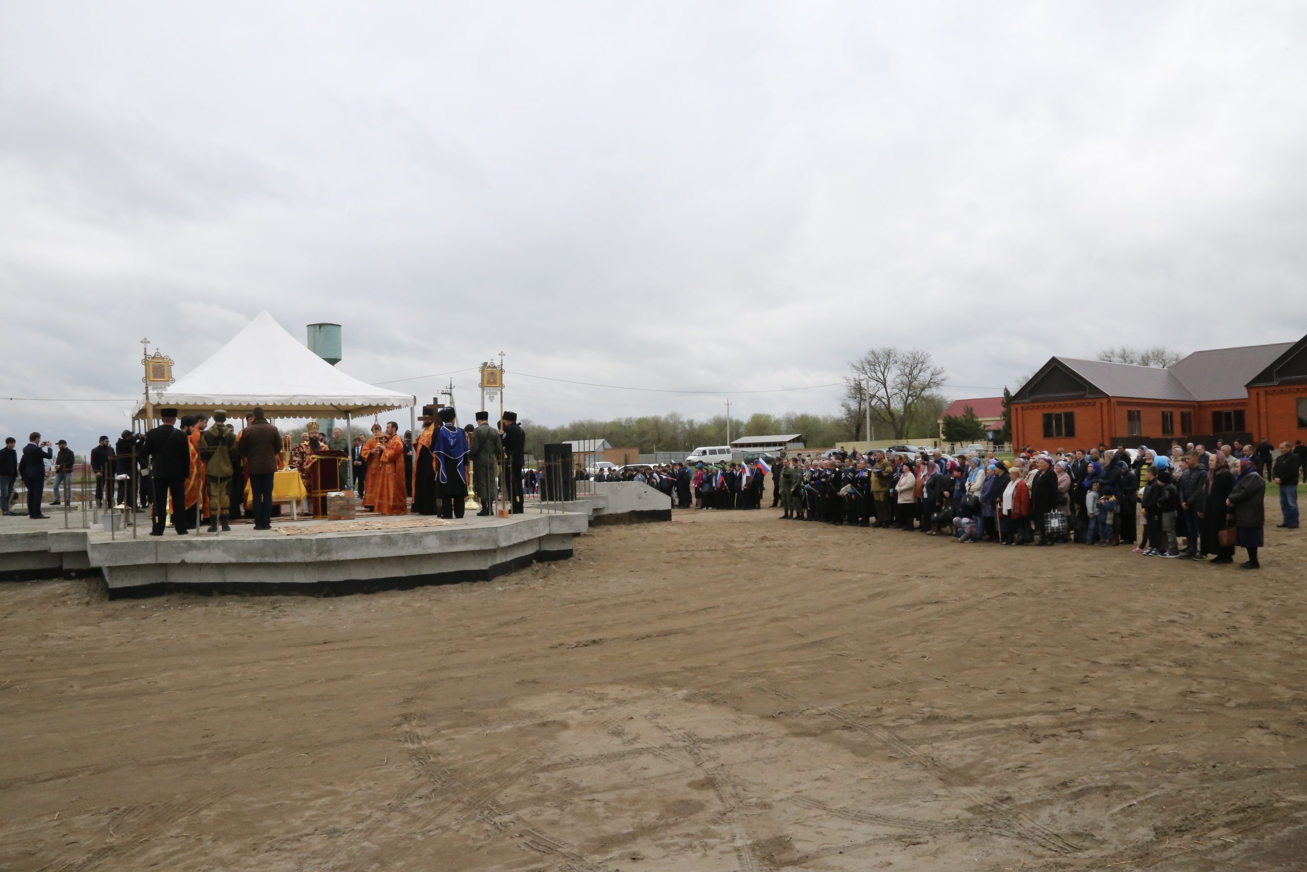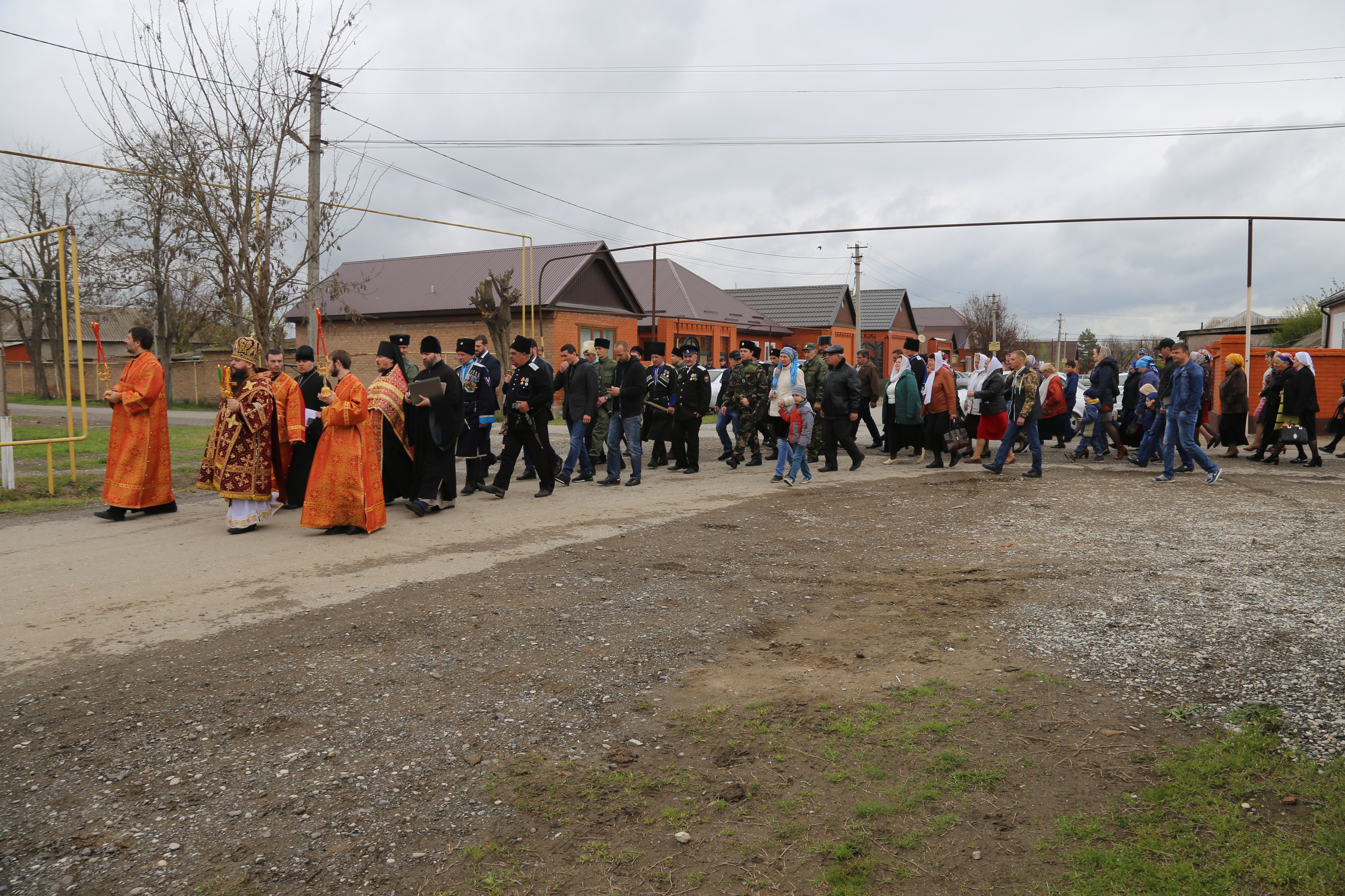 По завершении богослужения верующие прошли крестным ходом из старой станичной церкви к месту возведения нового храма.