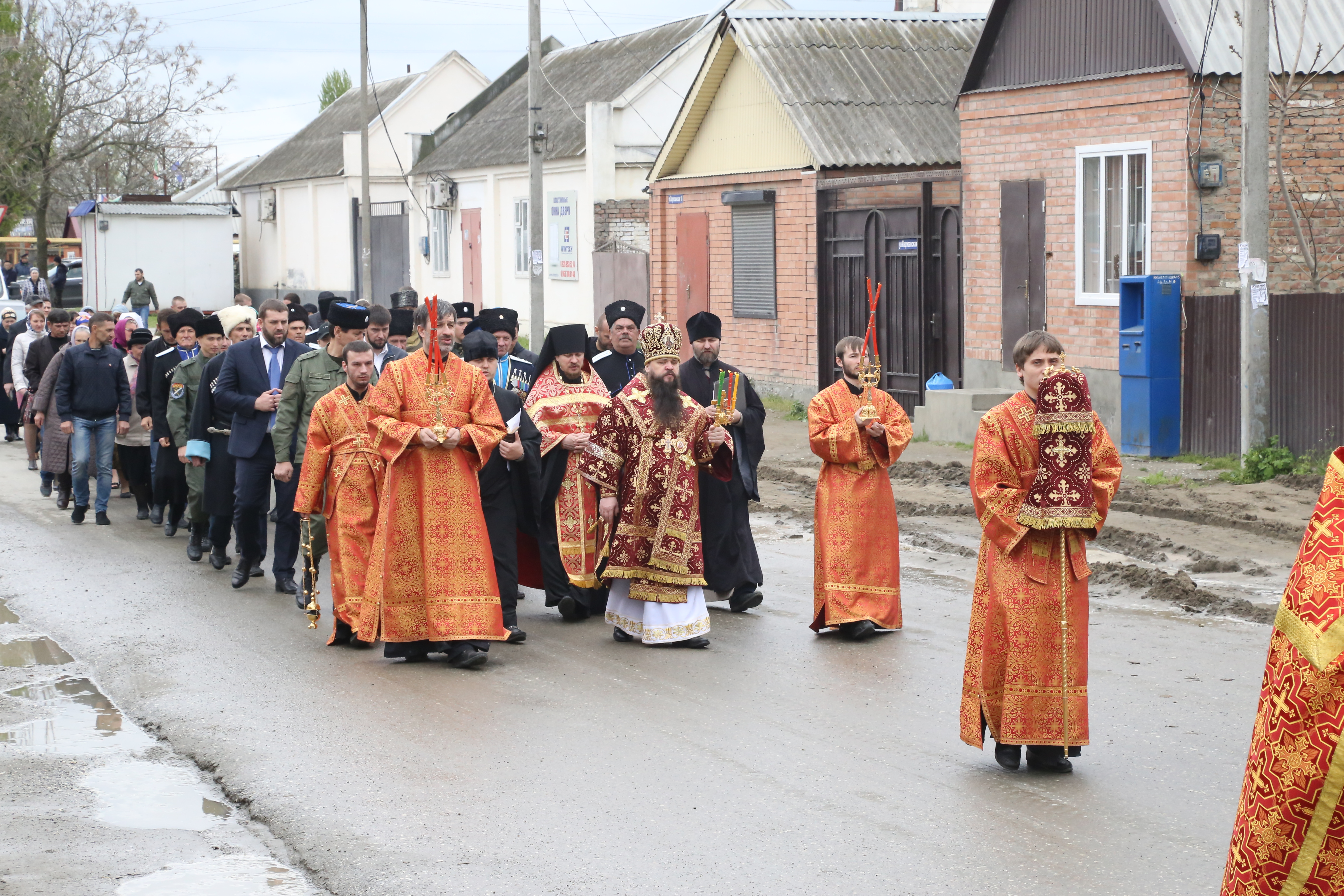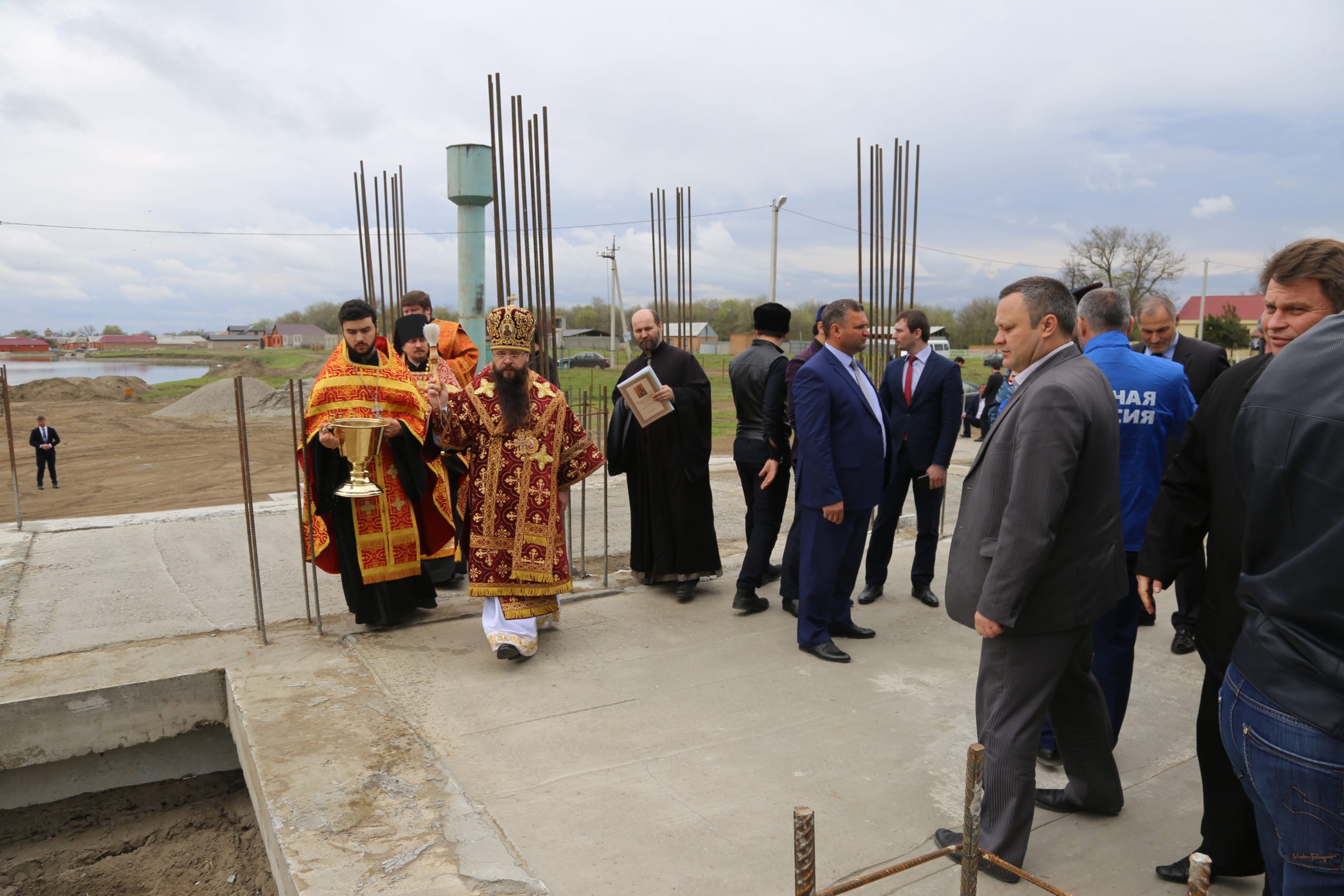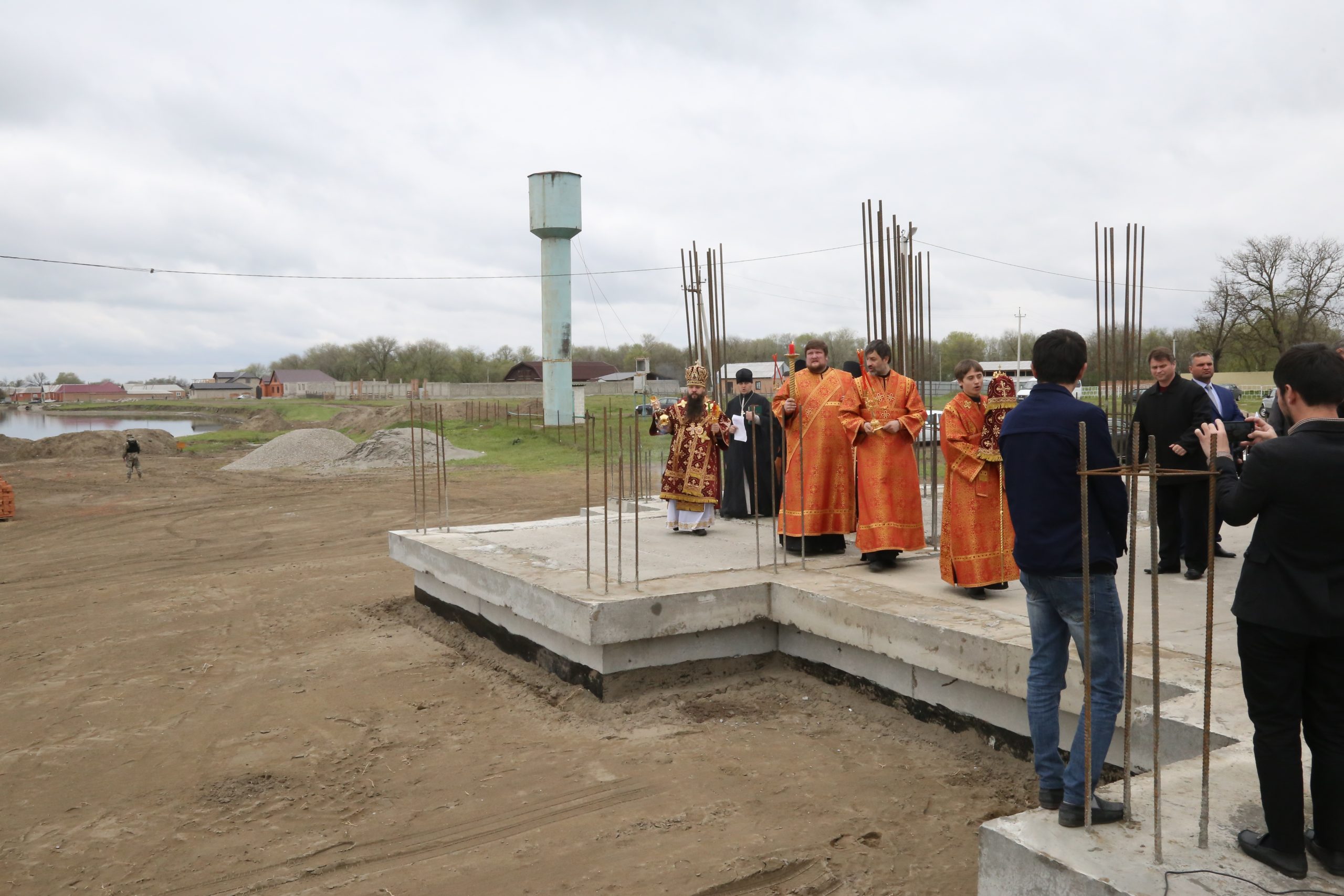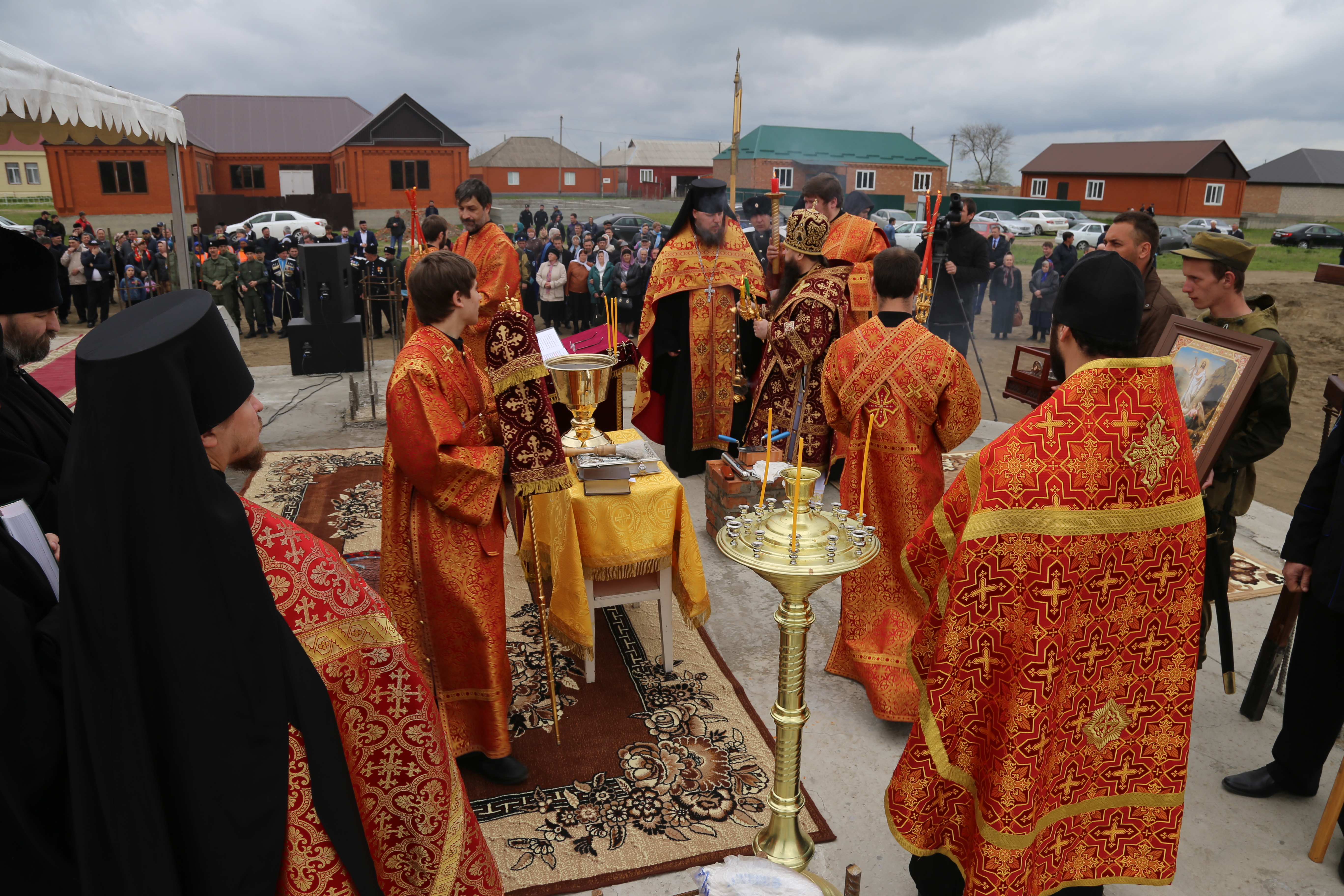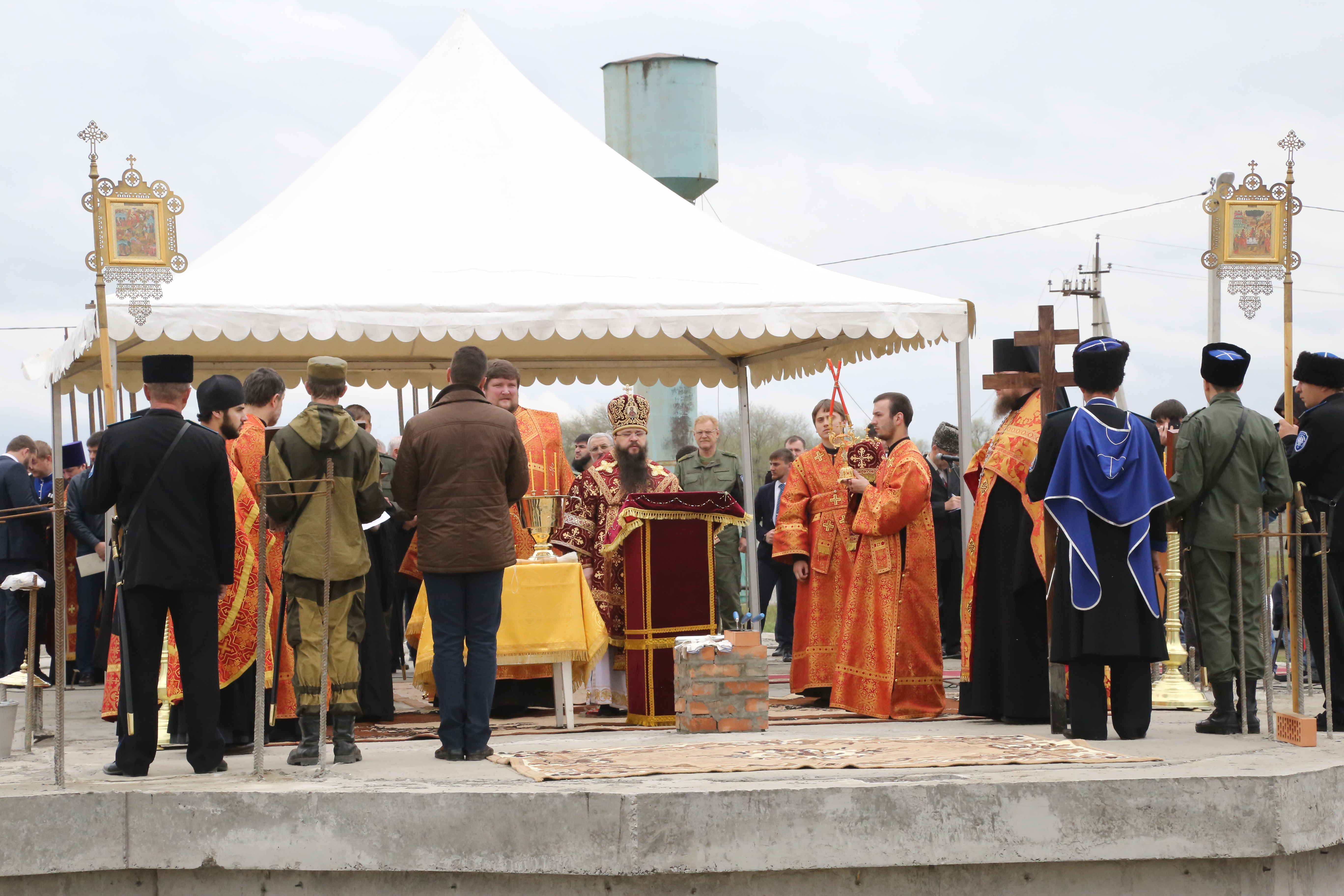 По завершении богослужения верующие прошли крестным ходом из старой станичной церкви к месту возведения нового храма.