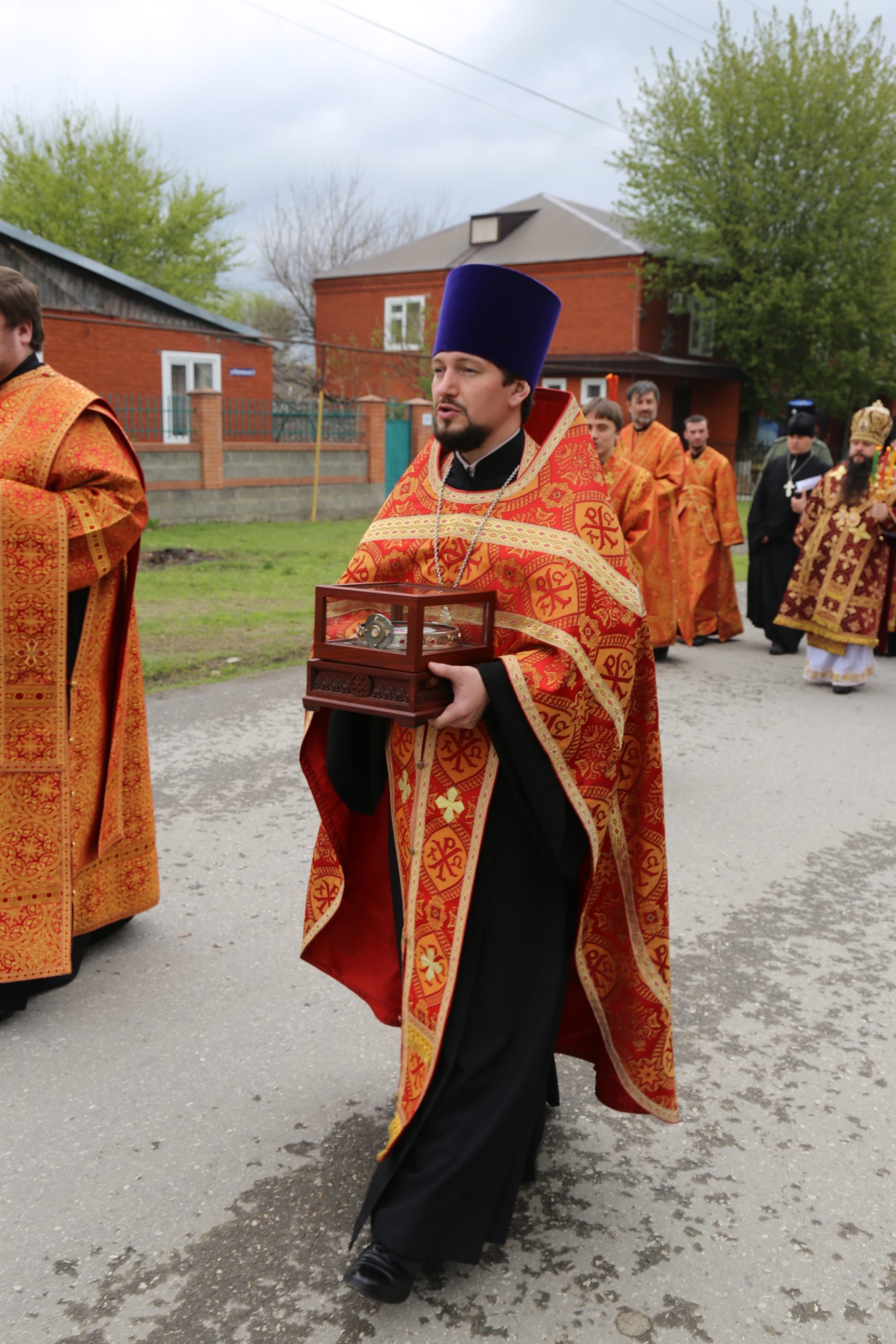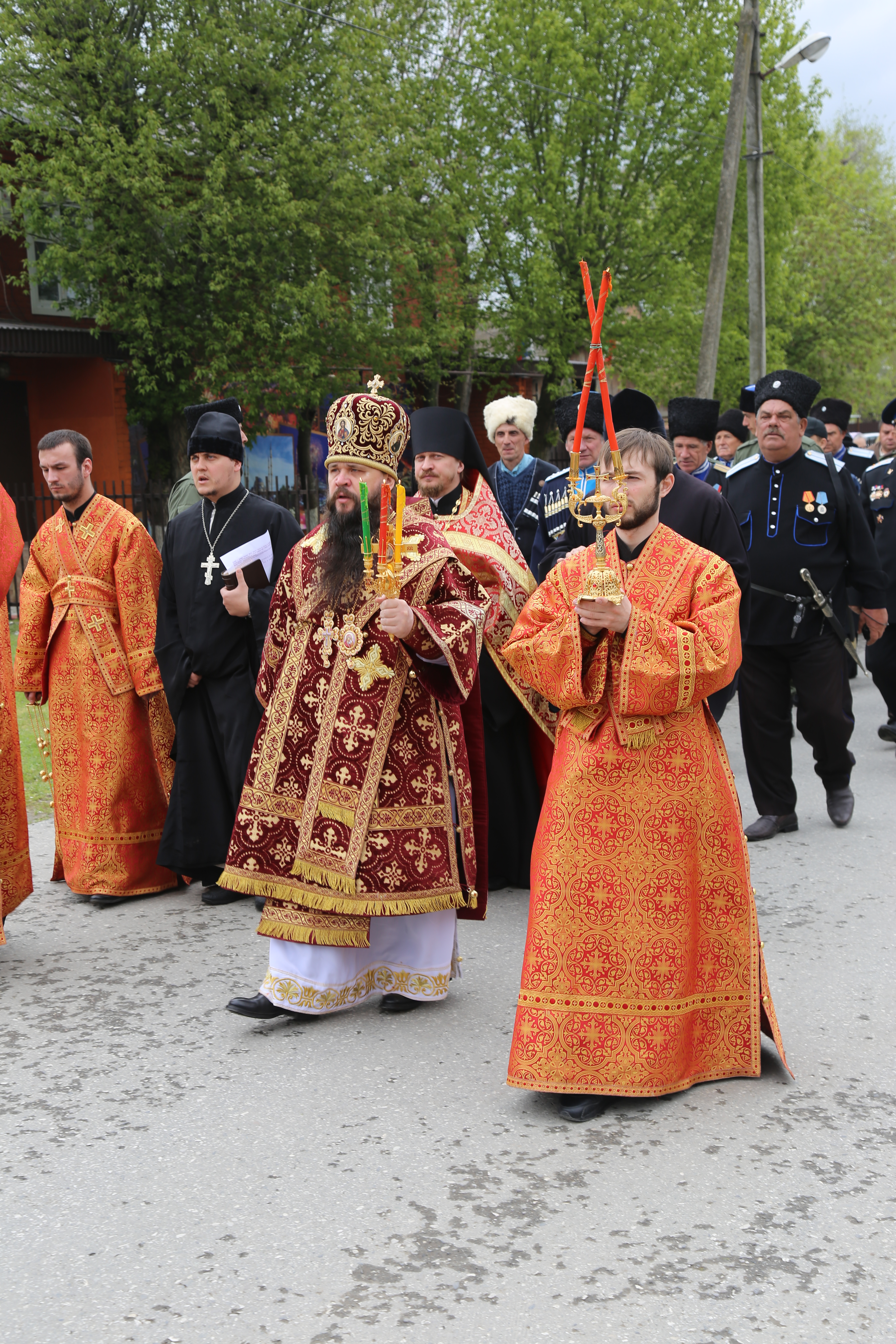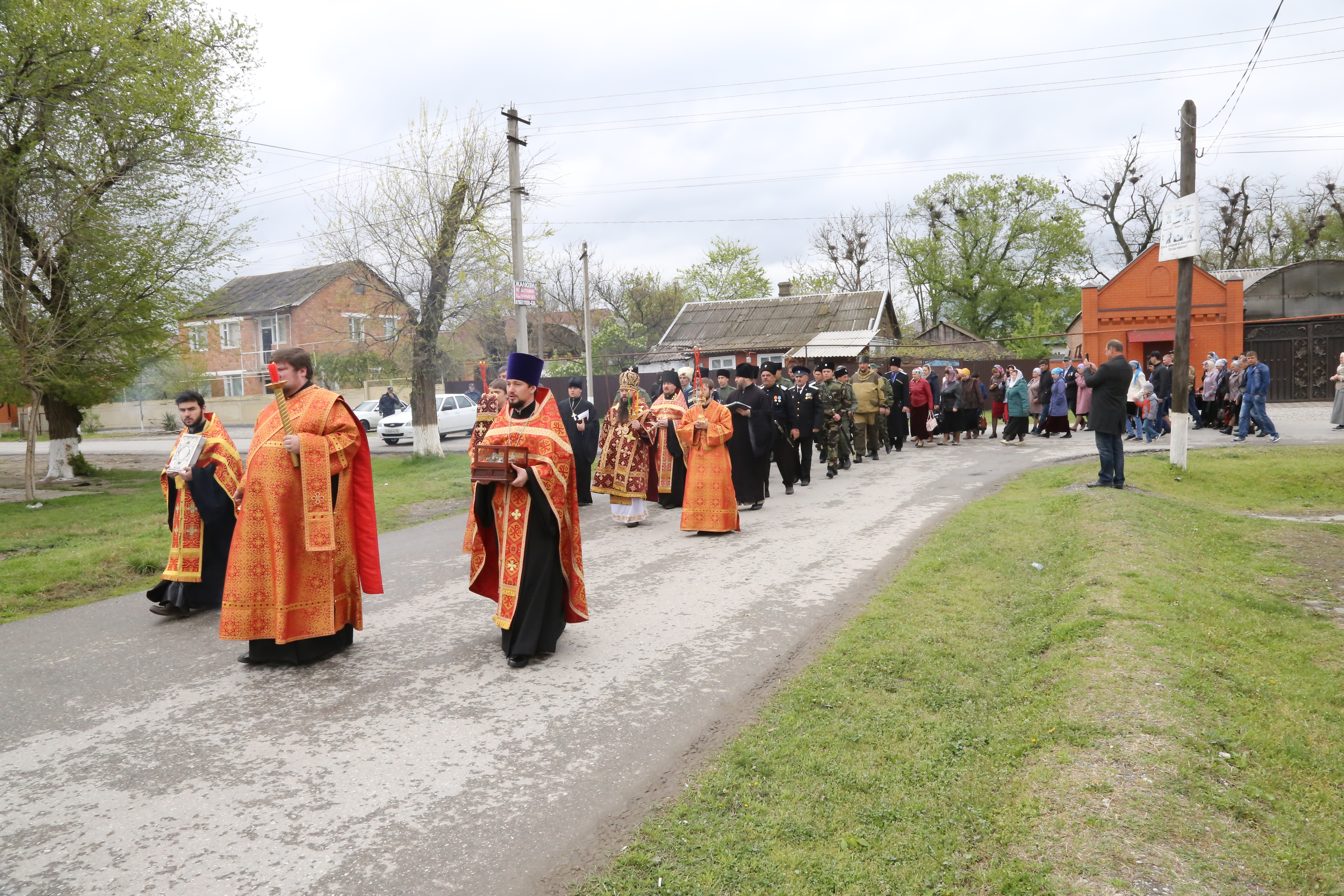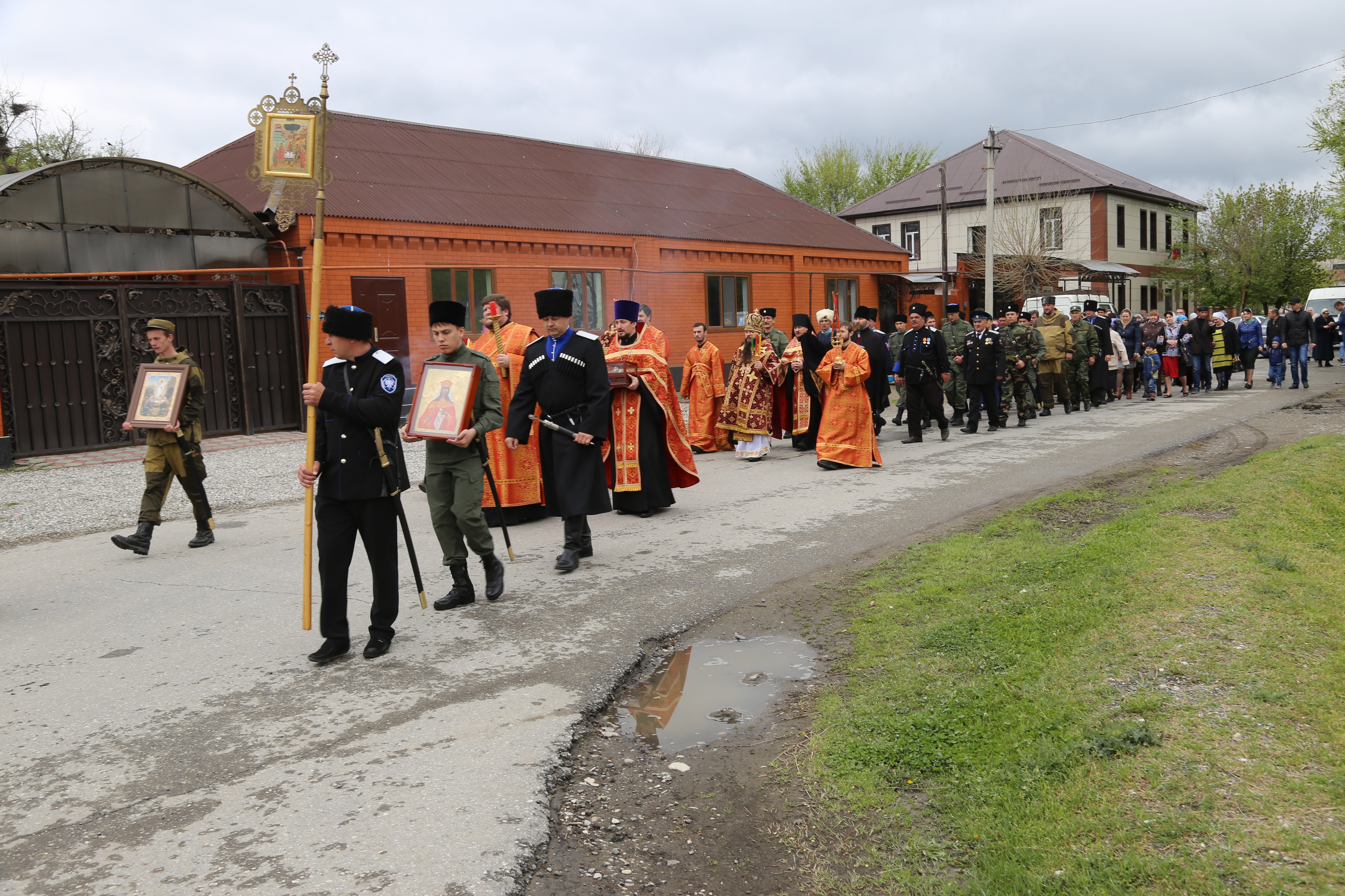 По завершении богослужения верующие прошли крестным ходом из старой станичной церкви к месту возведения нового храма.