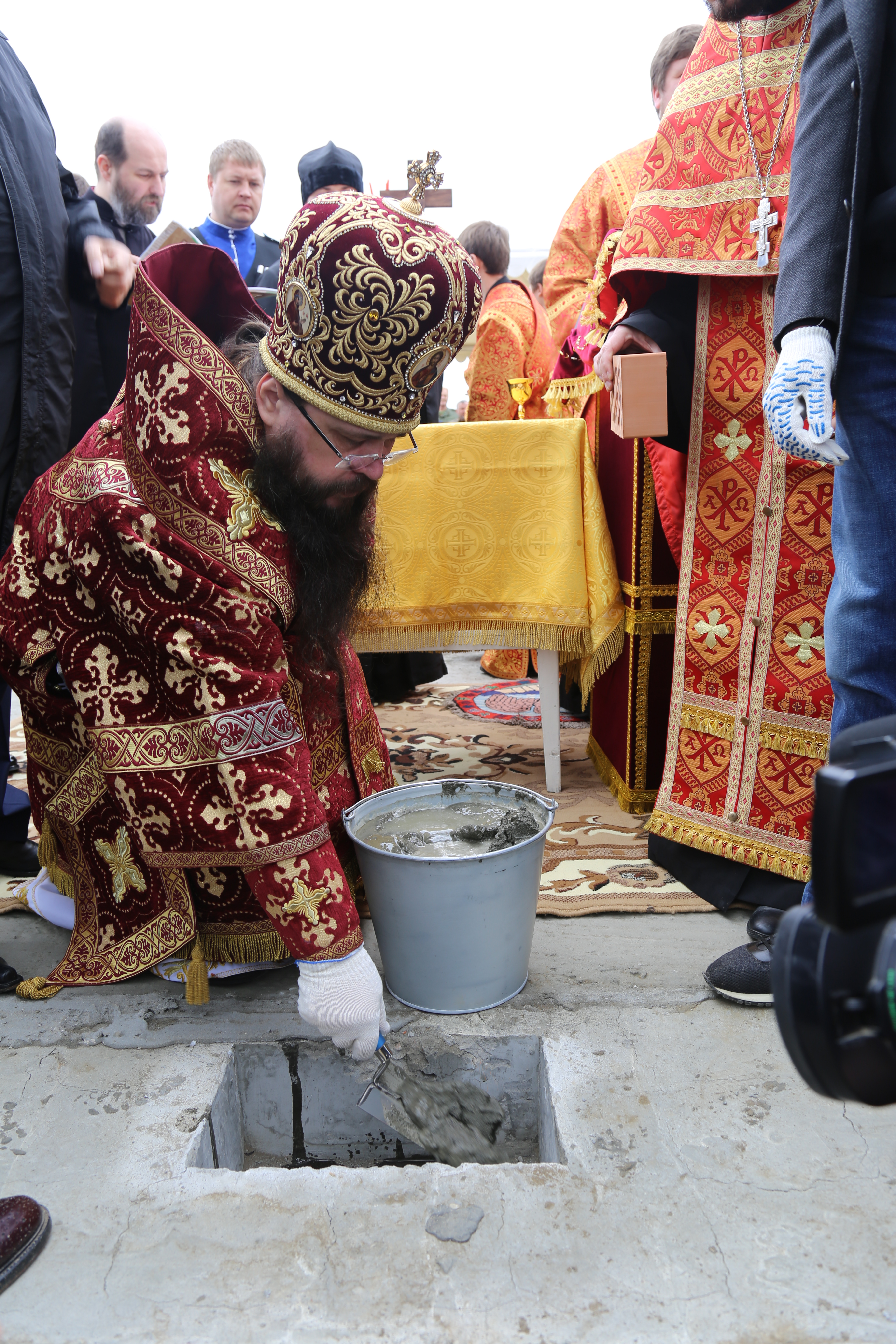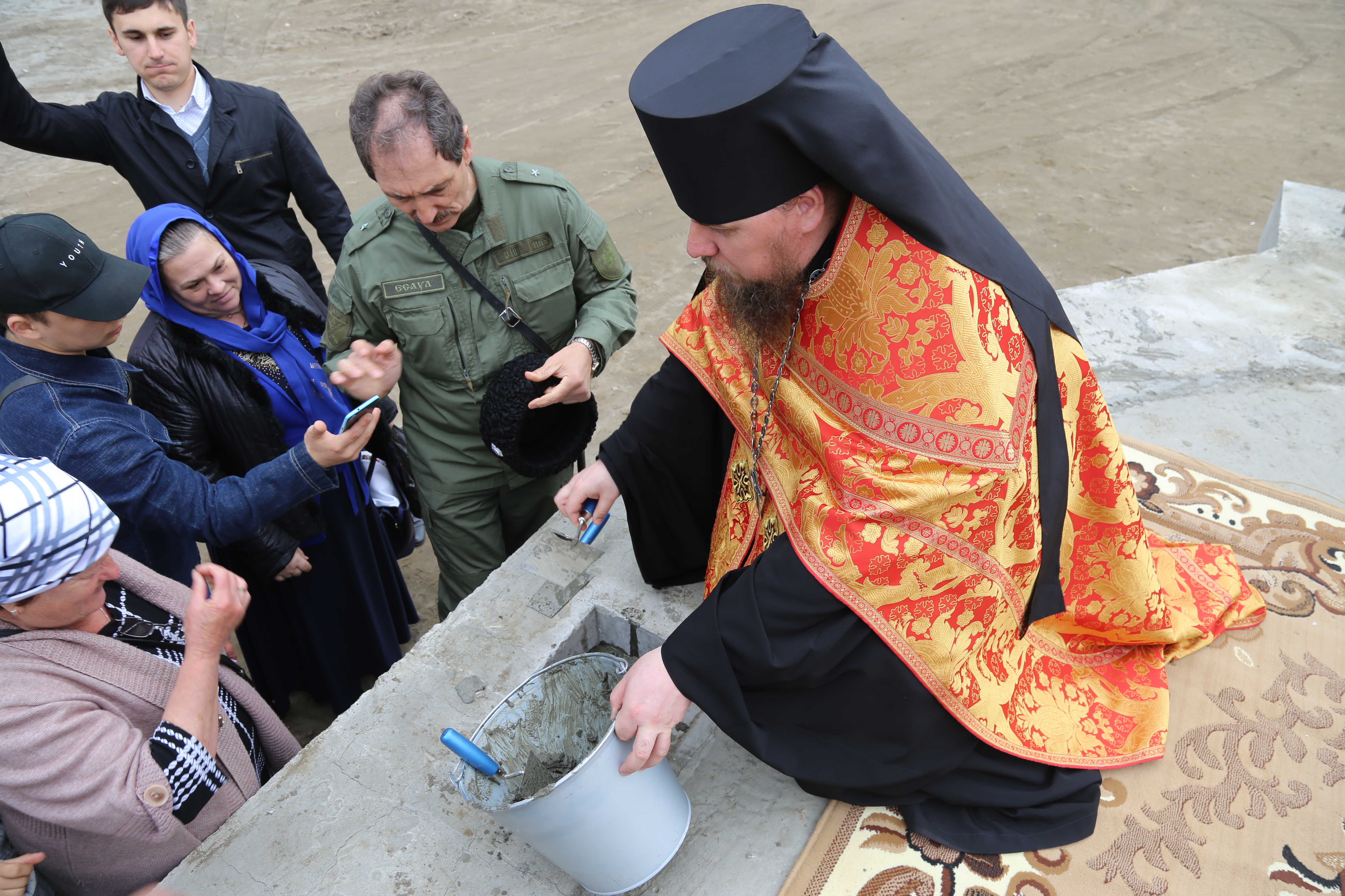 Здесь епископ Варлаам совершил молебное пение с чином освящения закладного камня в основание храма в честь святой великомученицы Варвары.