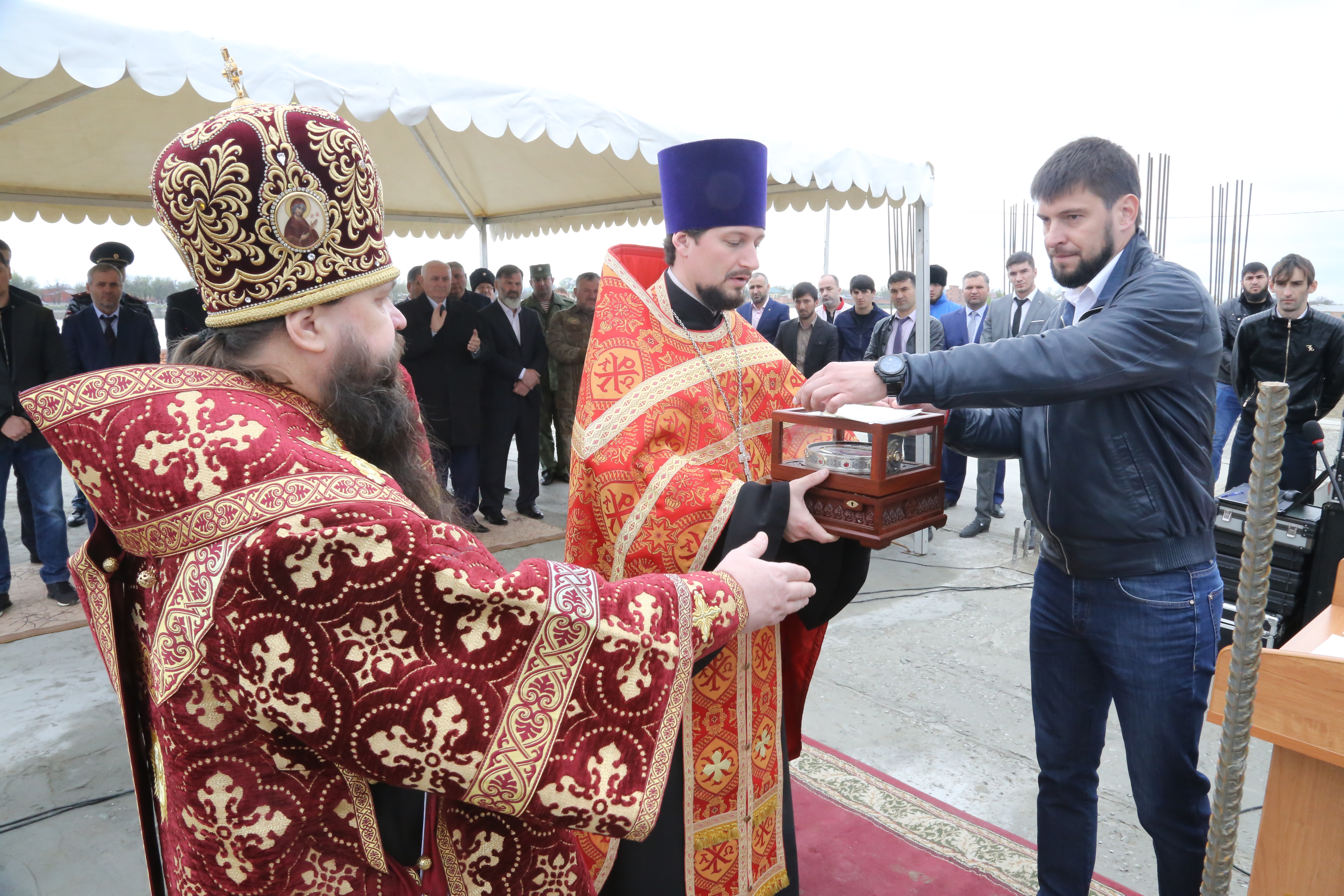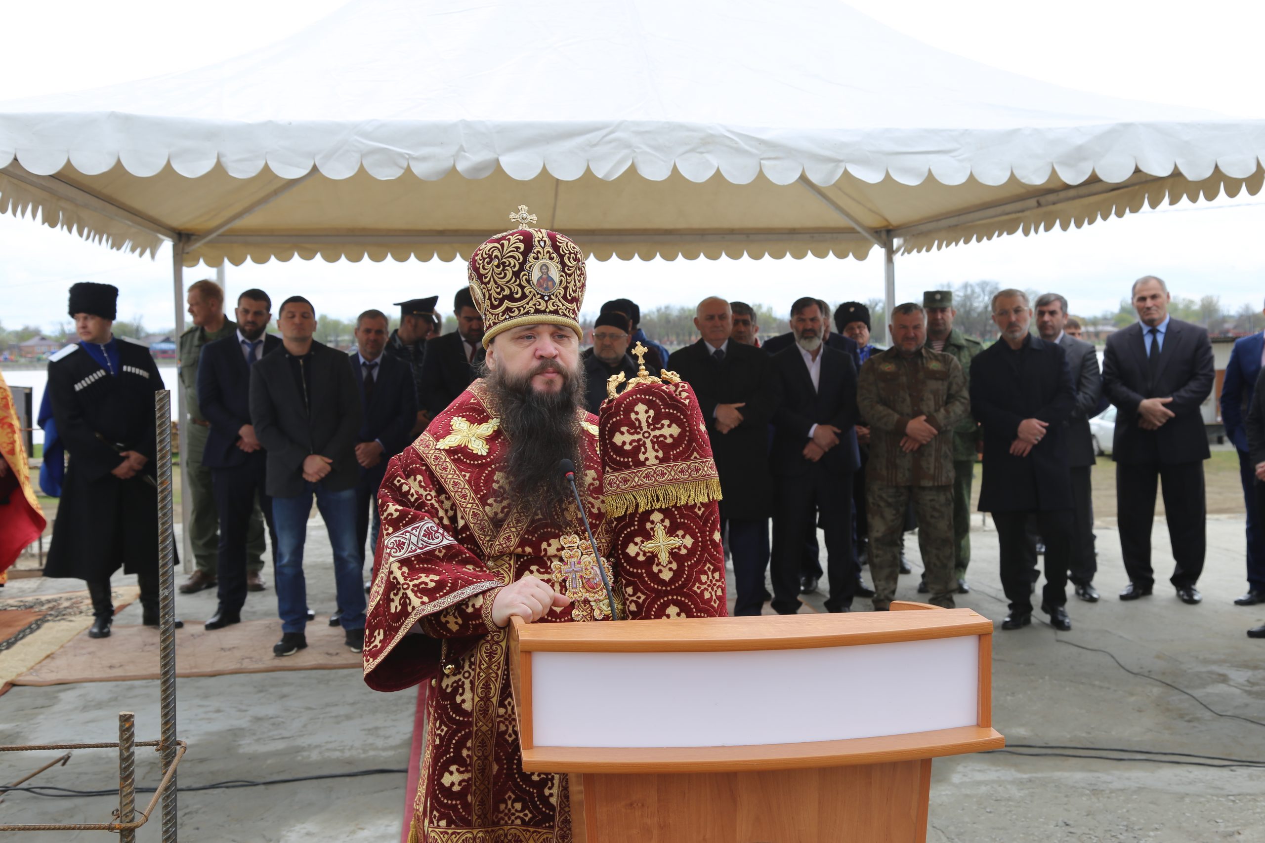 Затем слово предоставили советнику Главы ЧР Даниилу Мартынову. «Знаменательно, что новый храм заложен за год до 300-летия со дня основания станицы. Современная Чечня служит образцом межнационального и межрелигиозного мира и согласия, а строительство православного храма служит укреплением связей с нашей Родиной – Россией», — подчеркнул выступающий.
