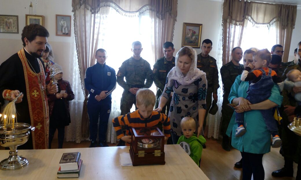 Священнослужитель привез в часть для поклонения мощевик с частицей мощей святой великомученицы Варвары и совершил молебное пение с чтением акафиста великомученице.