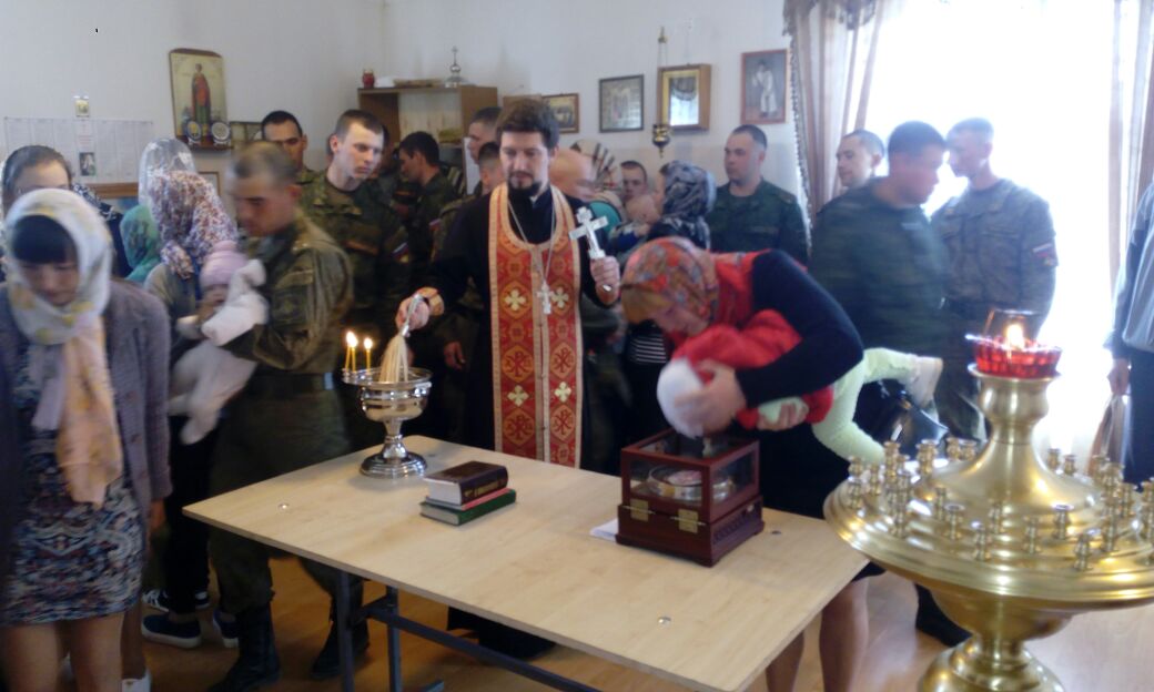 По окончании богослужения иерей Сергий совершил Таинство Крещения над одним из военнослужащих