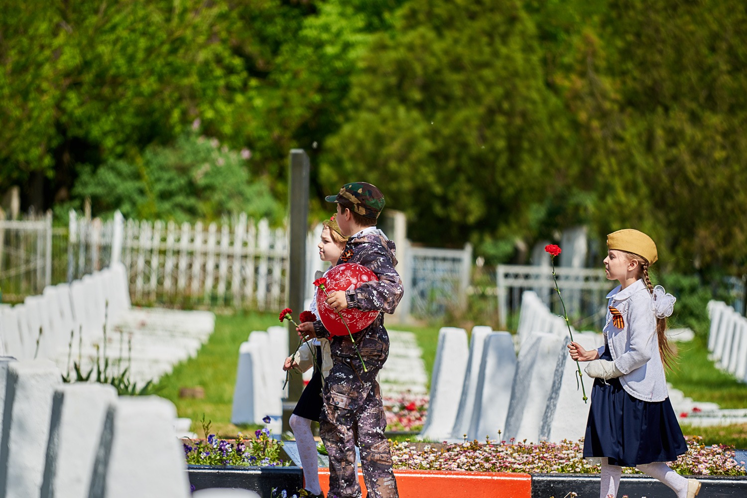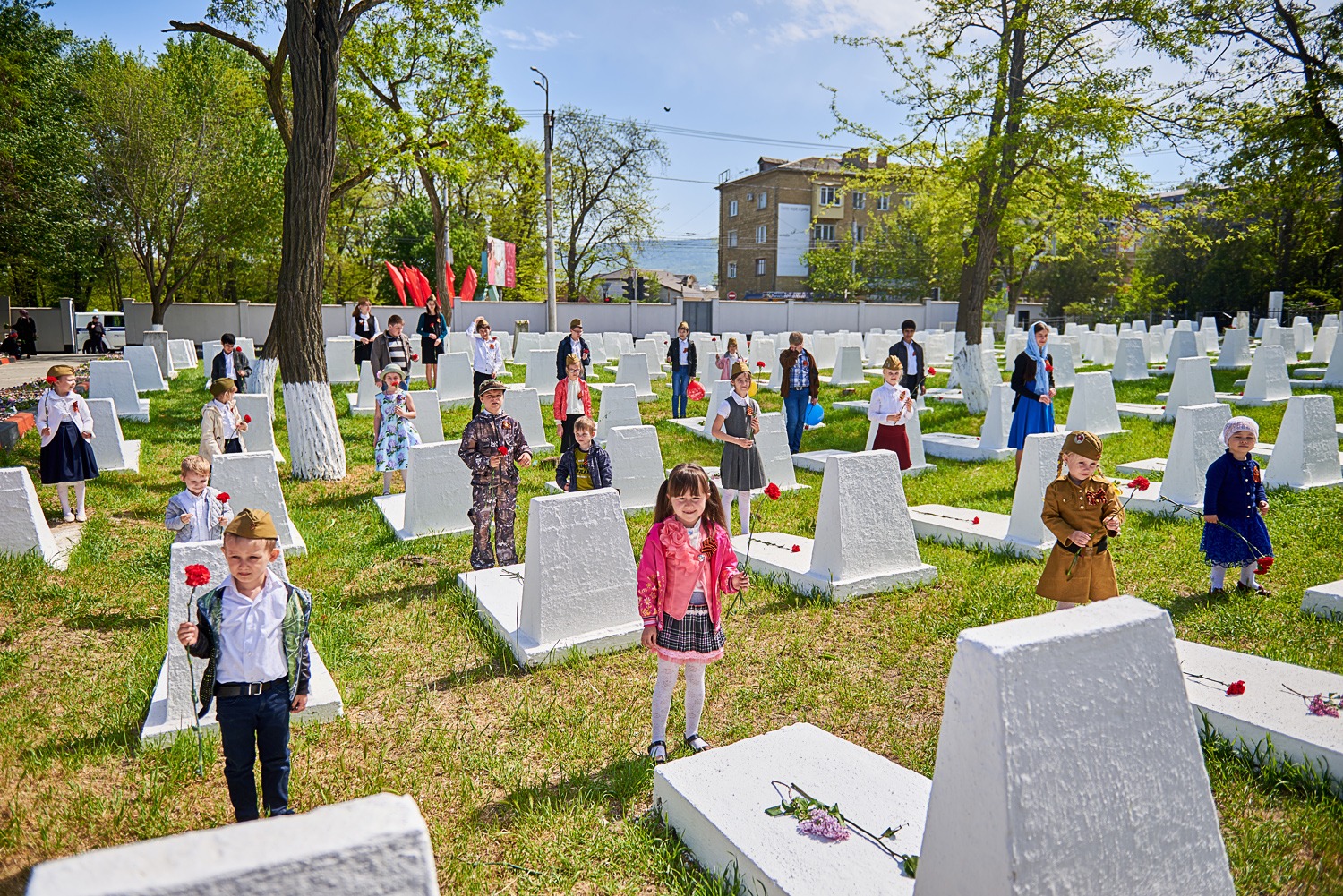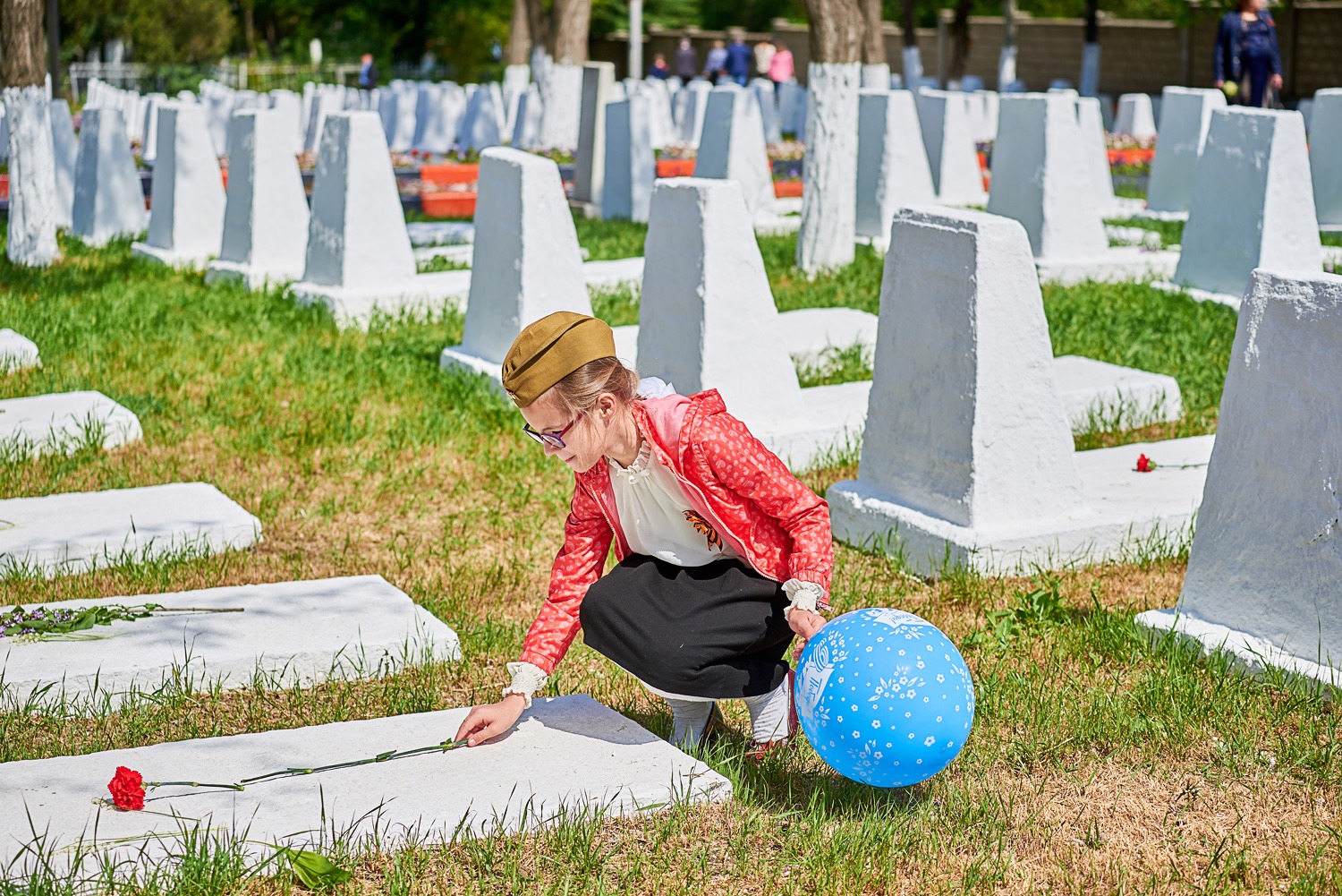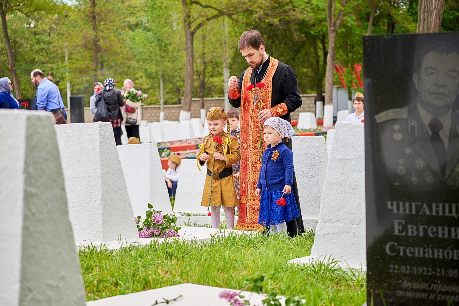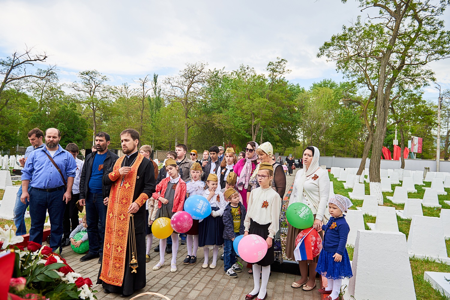 В заключение преподаватели и воспитанники школы возложили цветы к воинским захоронениям на городском кладбище, после чего православный священнослужитель совершил заупокойную литию у могил усопших воинов.