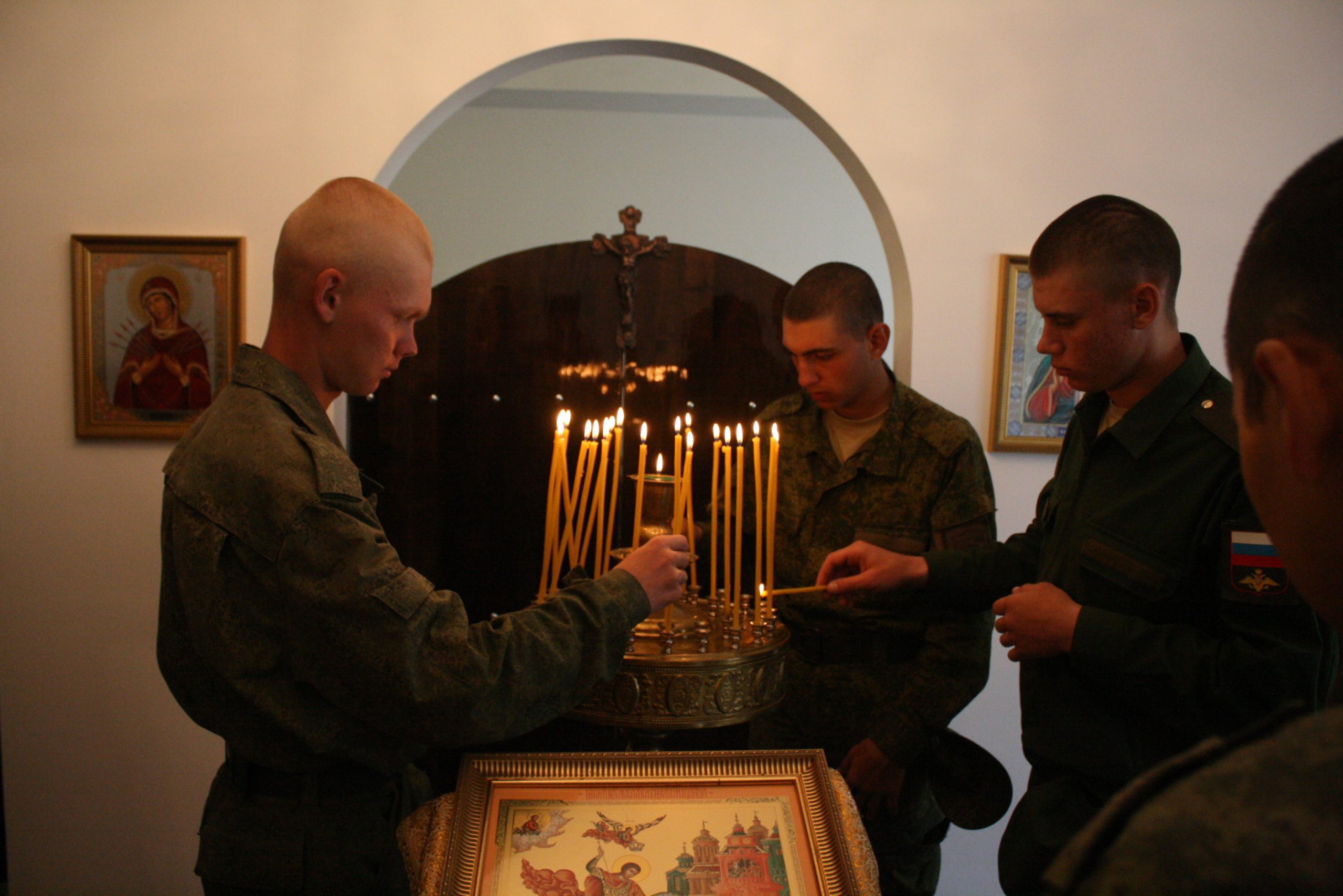 Все желающие смогли поставить в храме свечи, помолиться за сослуживцев, родных и близких.