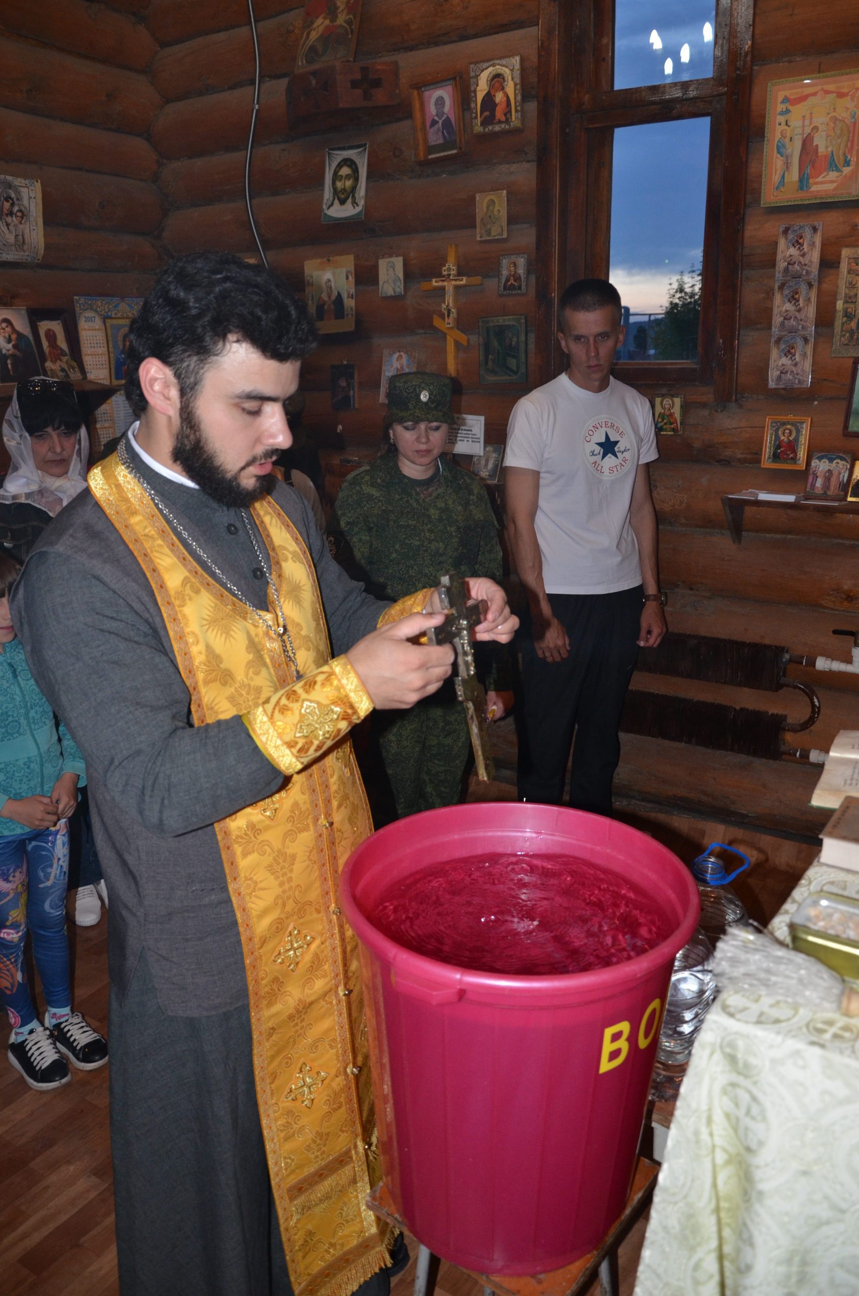 Отец благочинный совершил в войсковой часовне в честь святителя Николая водосвятный молебен с чтением акафиста святому угоднику Божию.