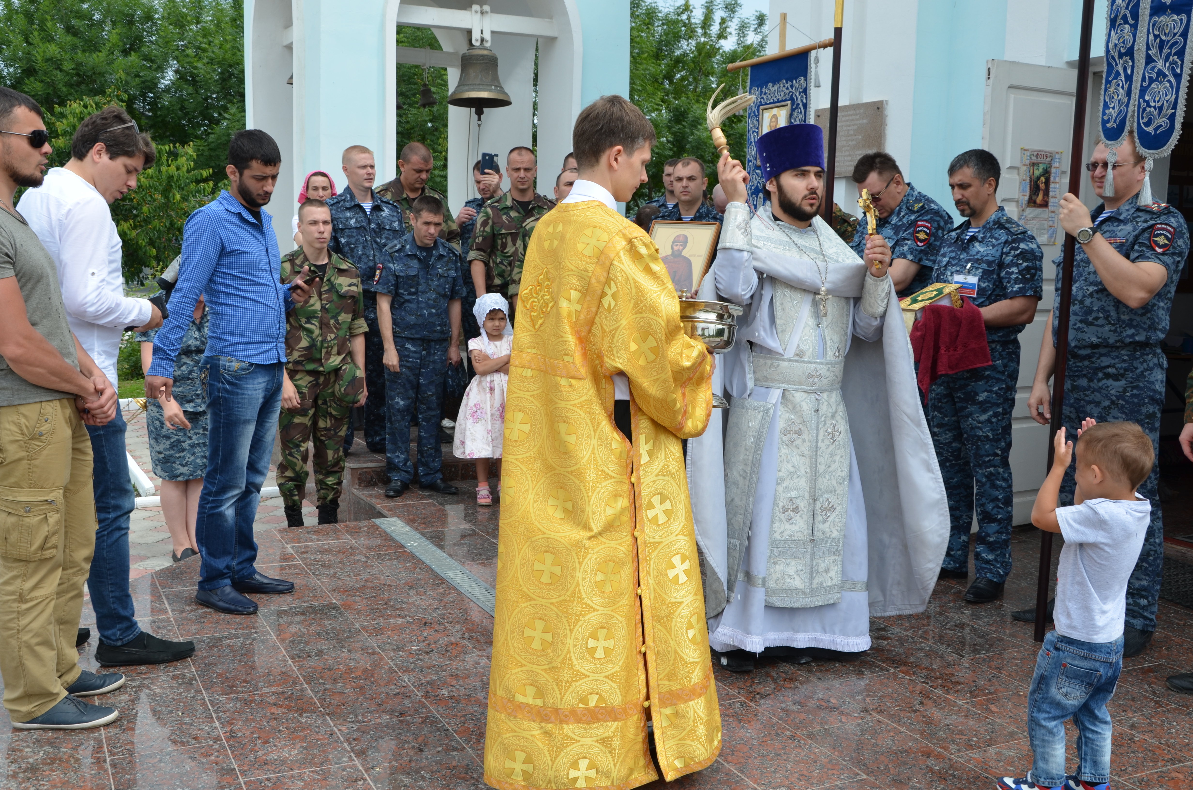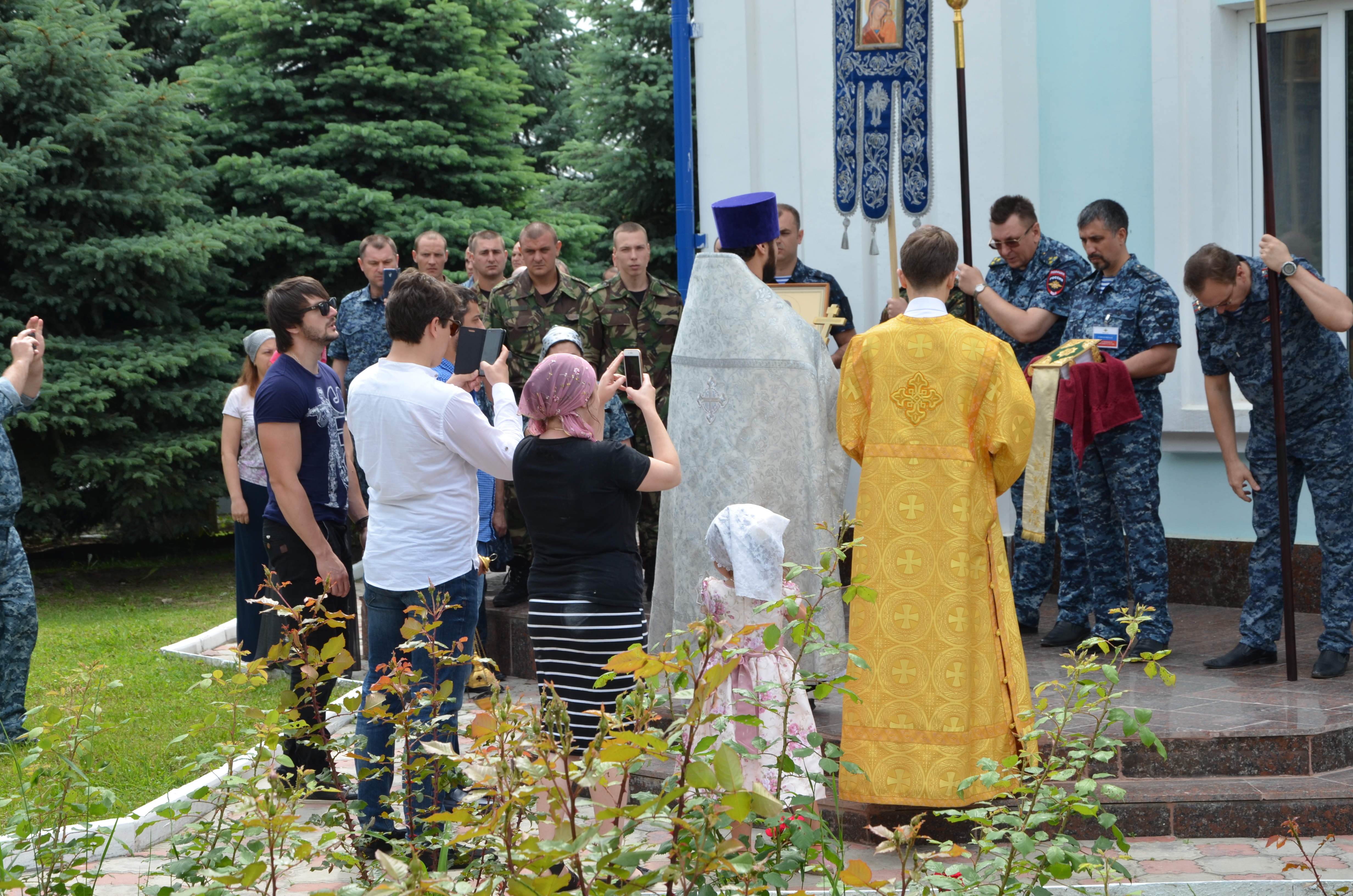 По окончании богослужения священнослужитель совершил праздничный молебен с крестным ходом вокруг храма.