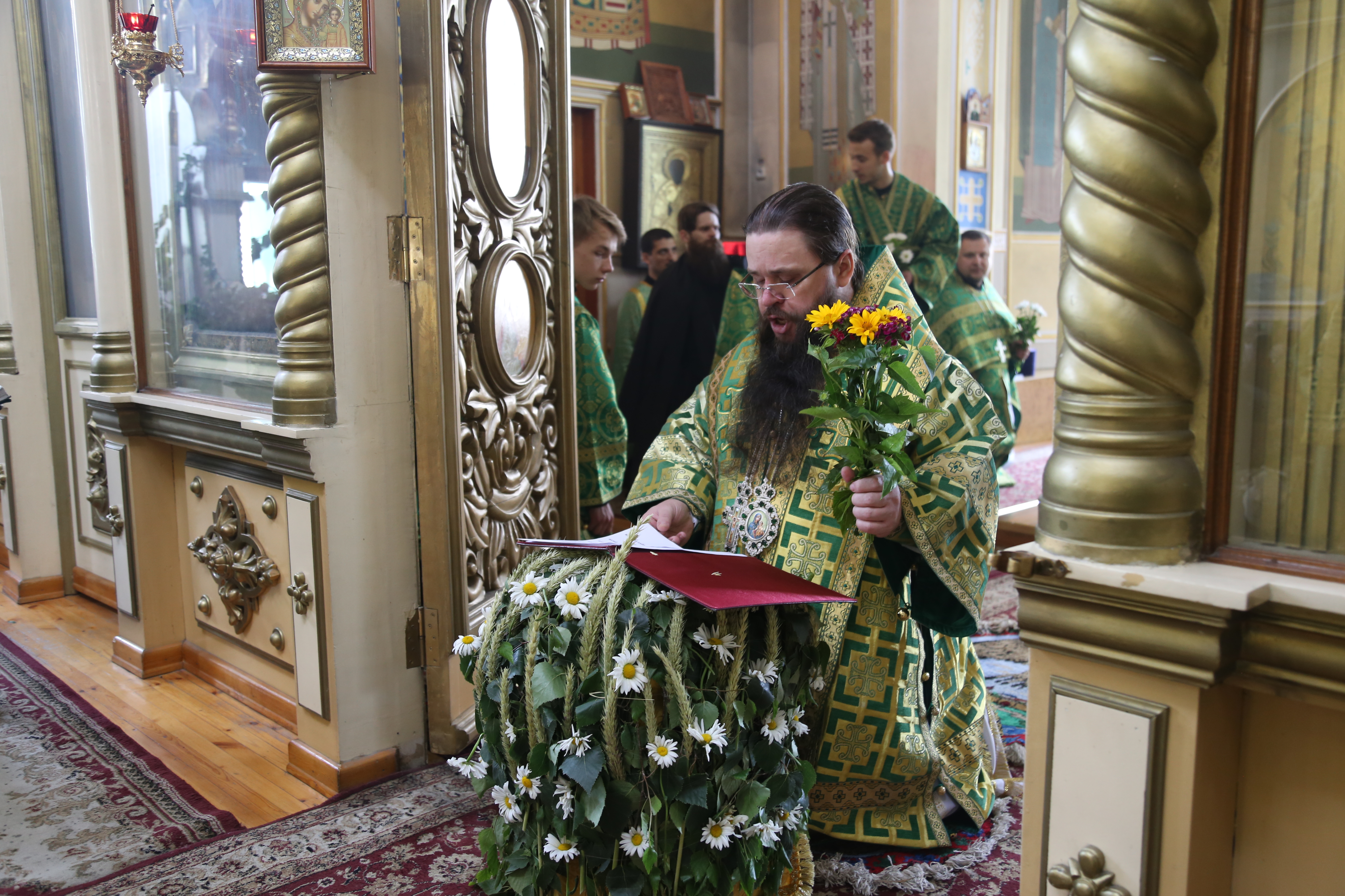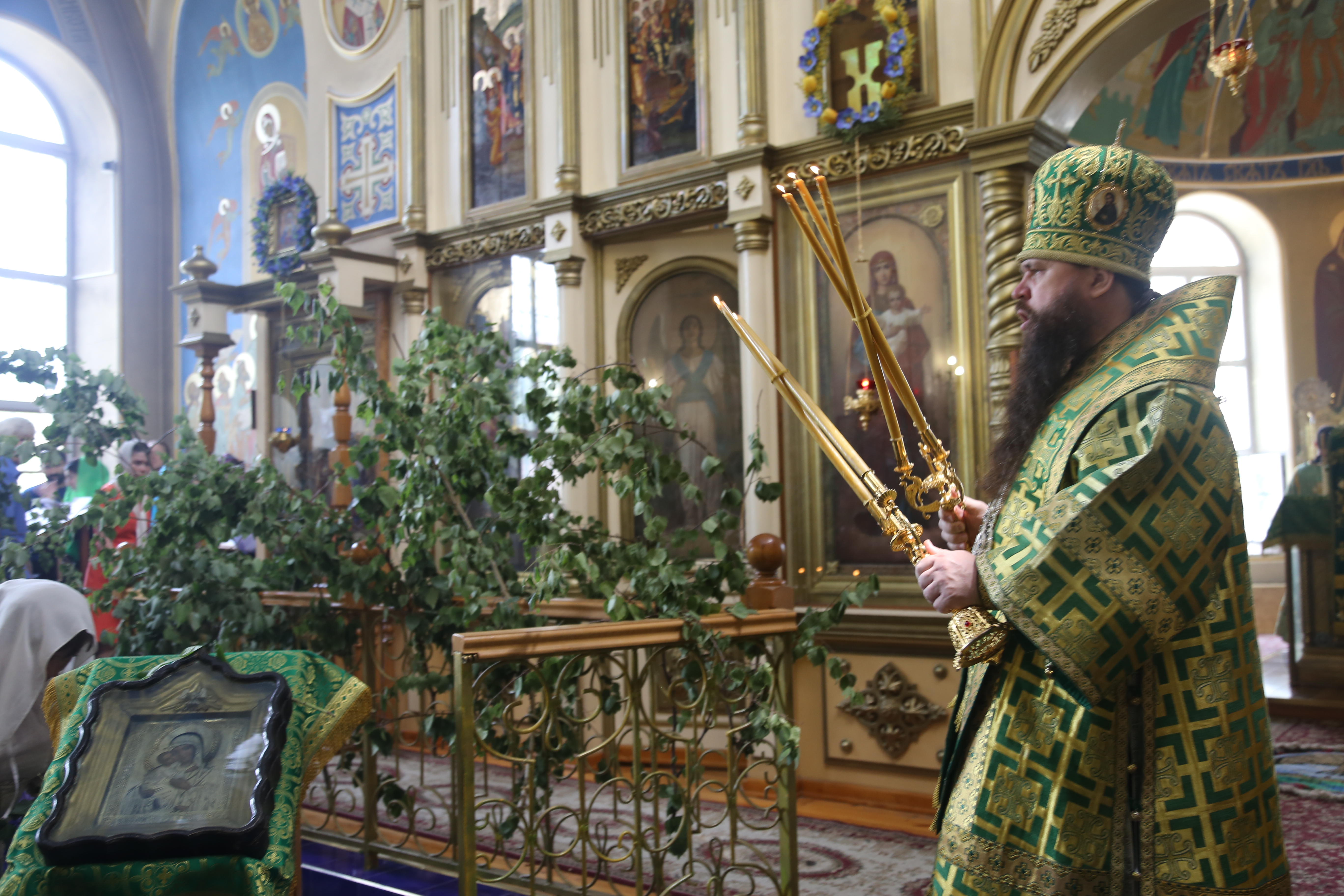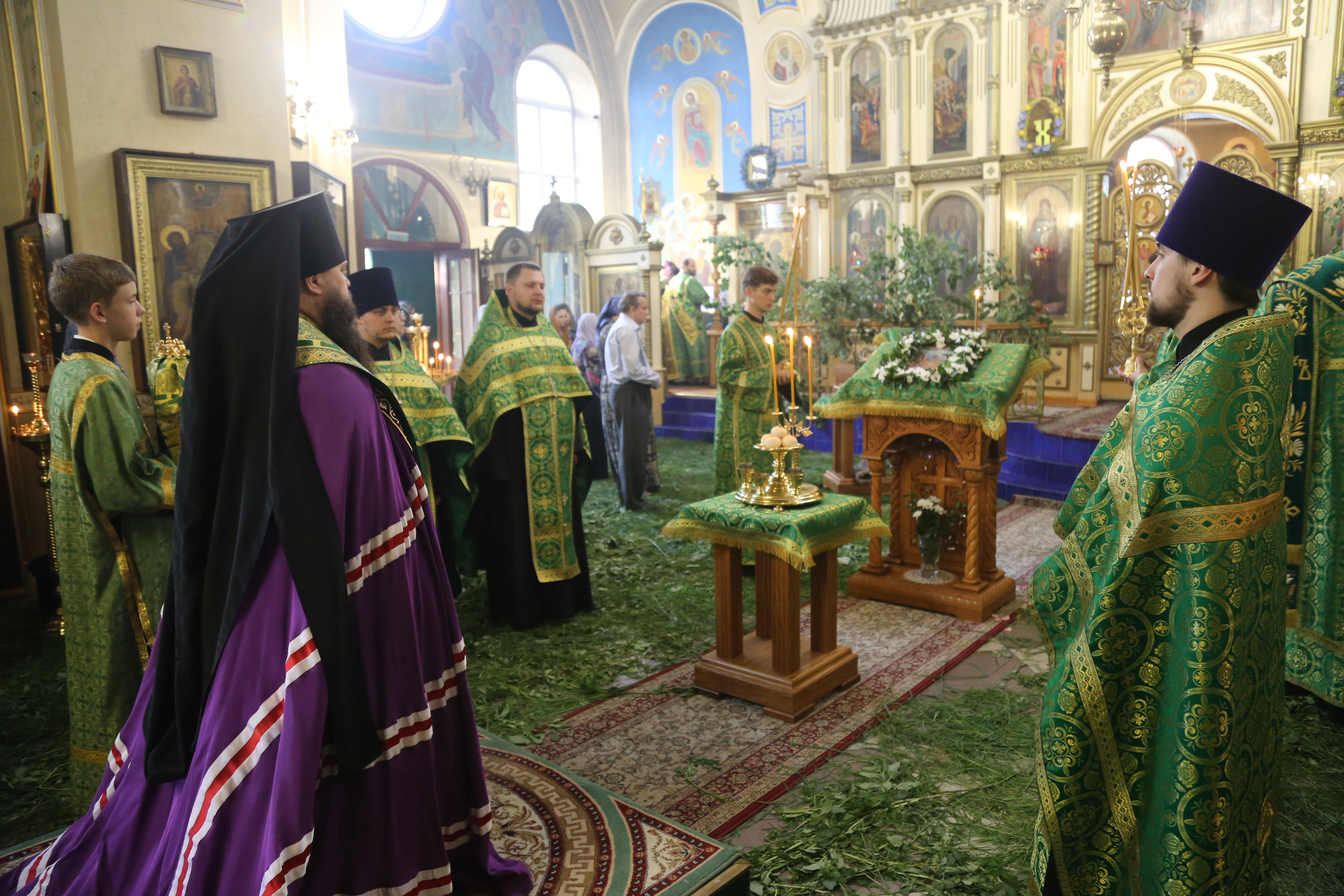 По окончании Литургии епископ Варлаам совершил великую вечерню праздника Пятидесятницы с чтением коленопреклонных молитв.