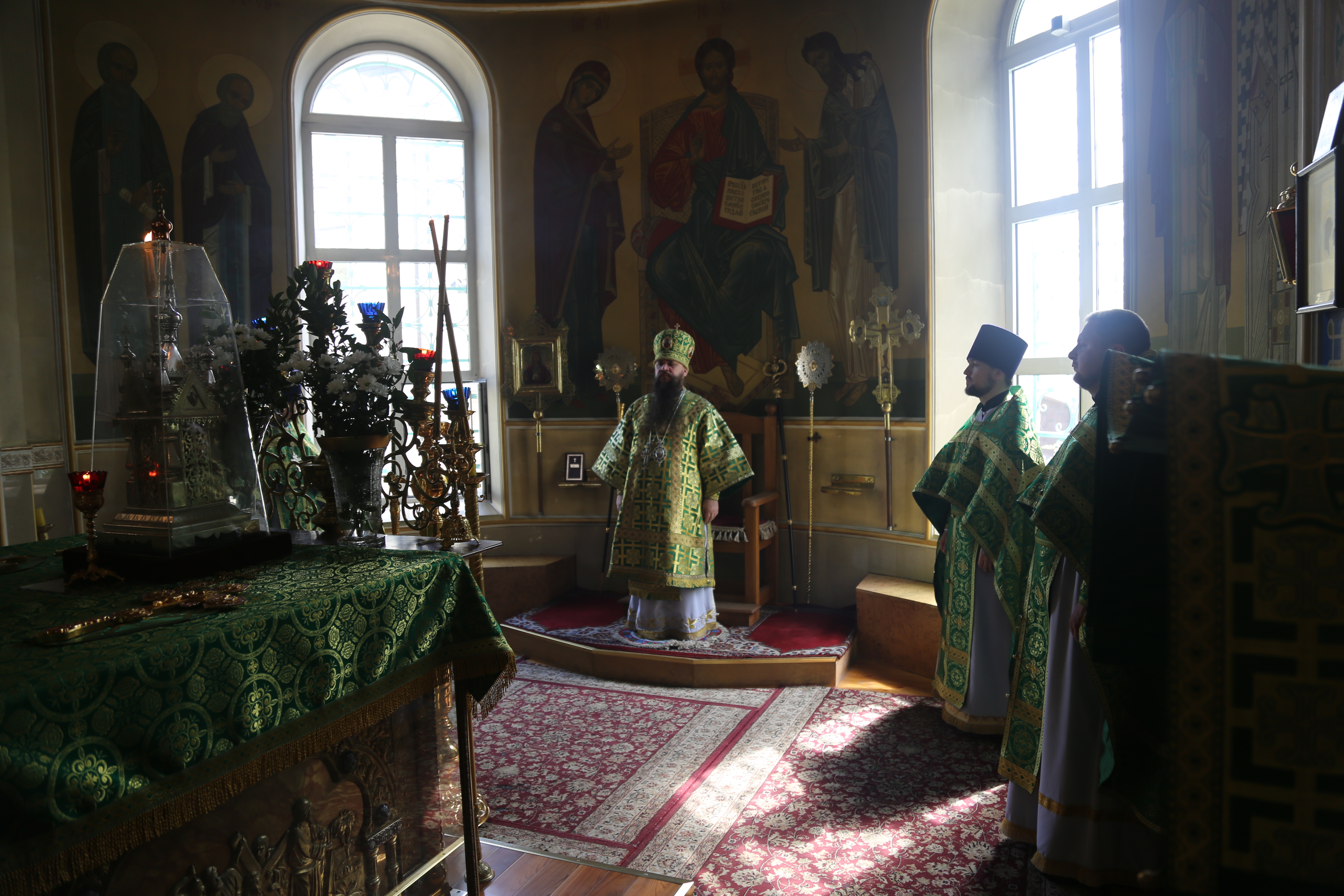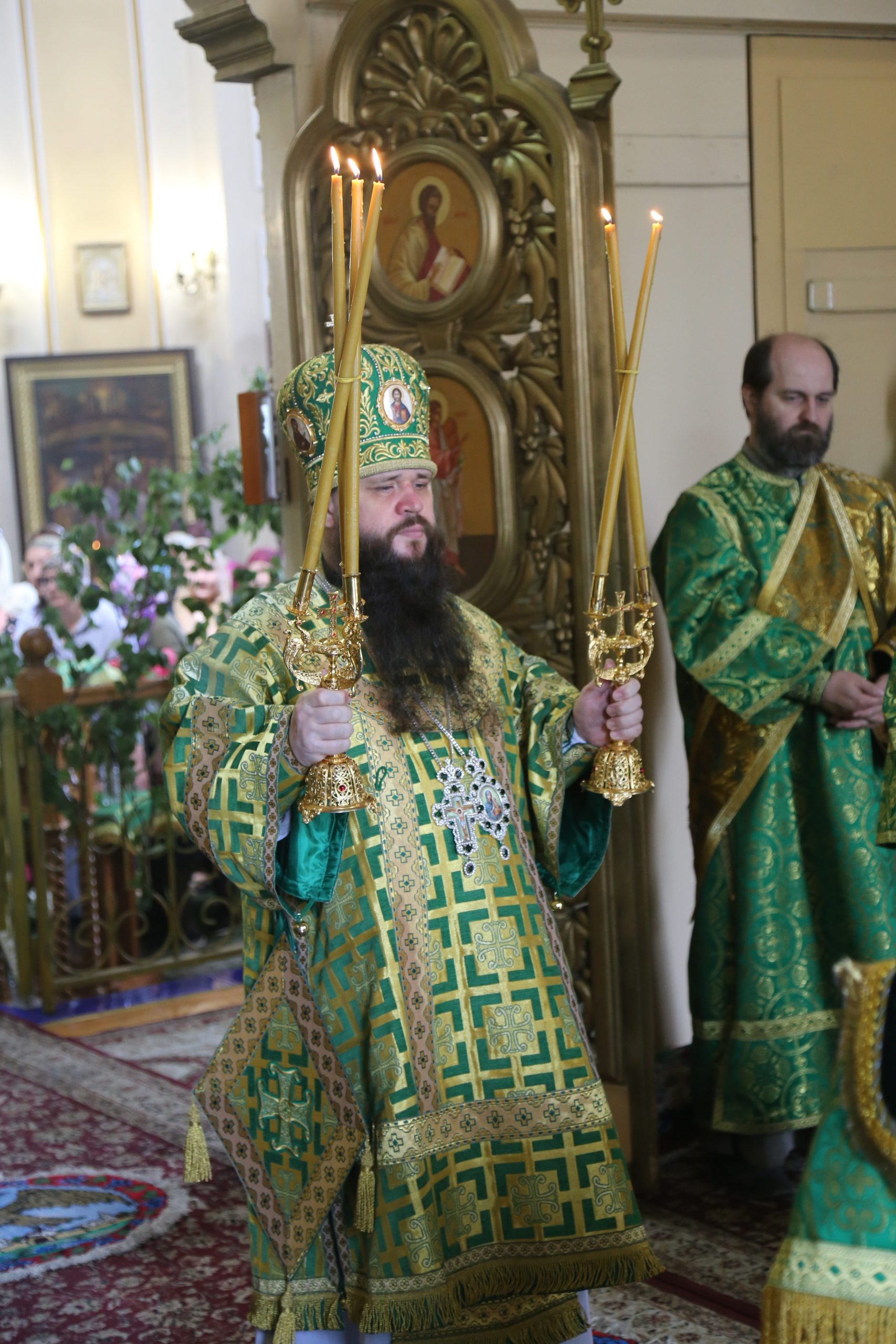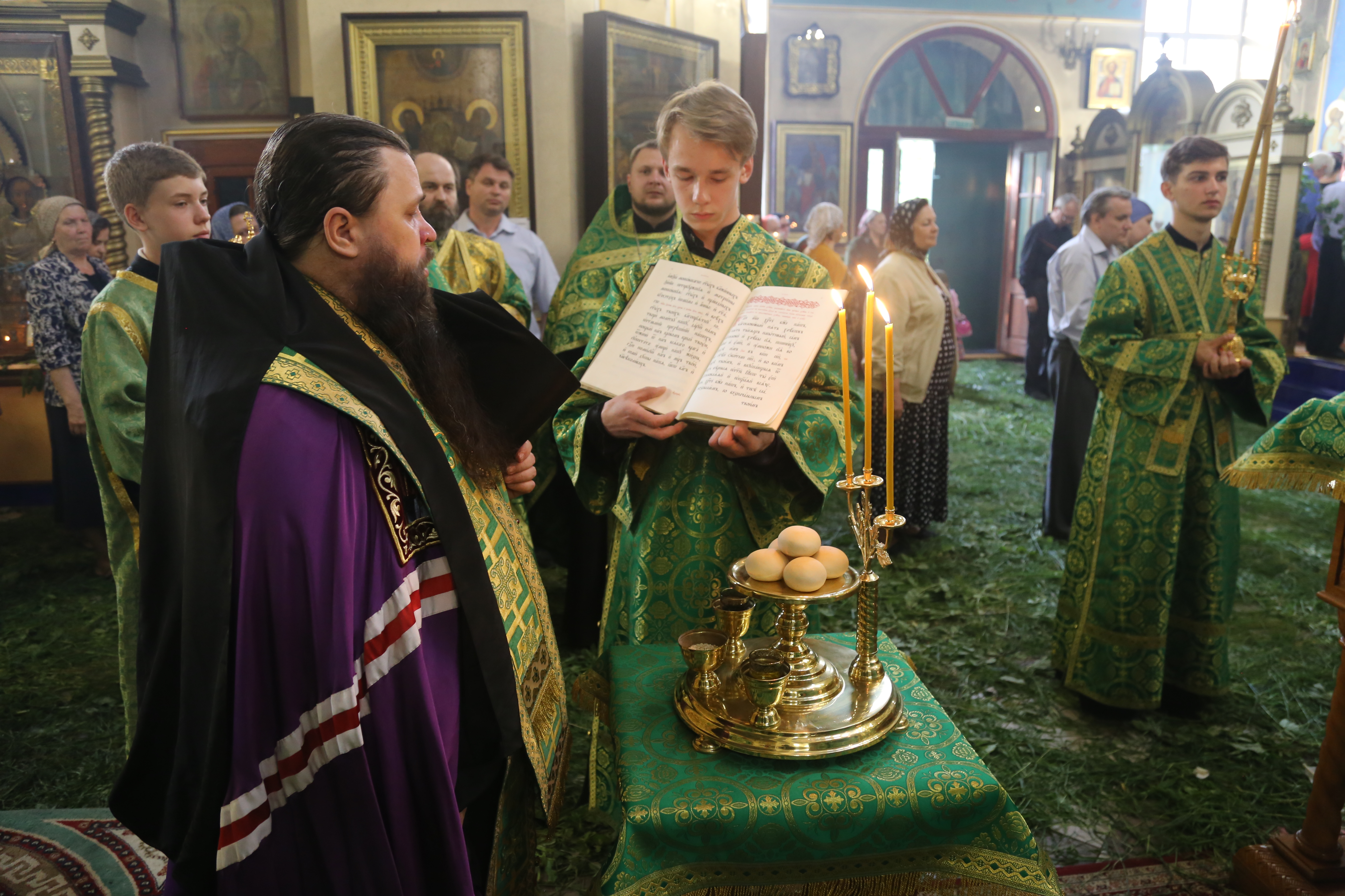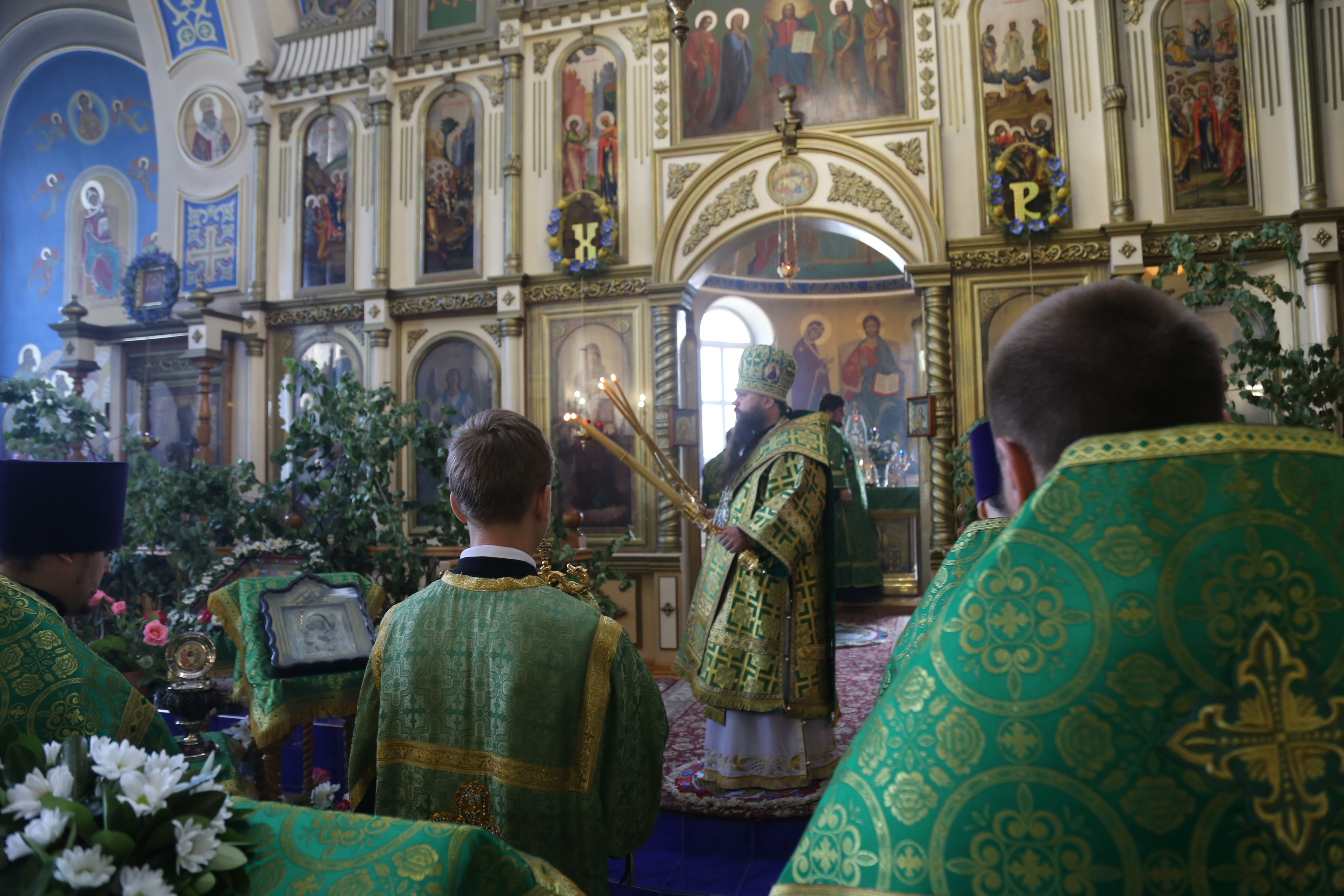 По окончании Литургии епископ Варлаам совершил великую вечерню праздника Пятидесятницы с чтением коленопреклонных молитв.