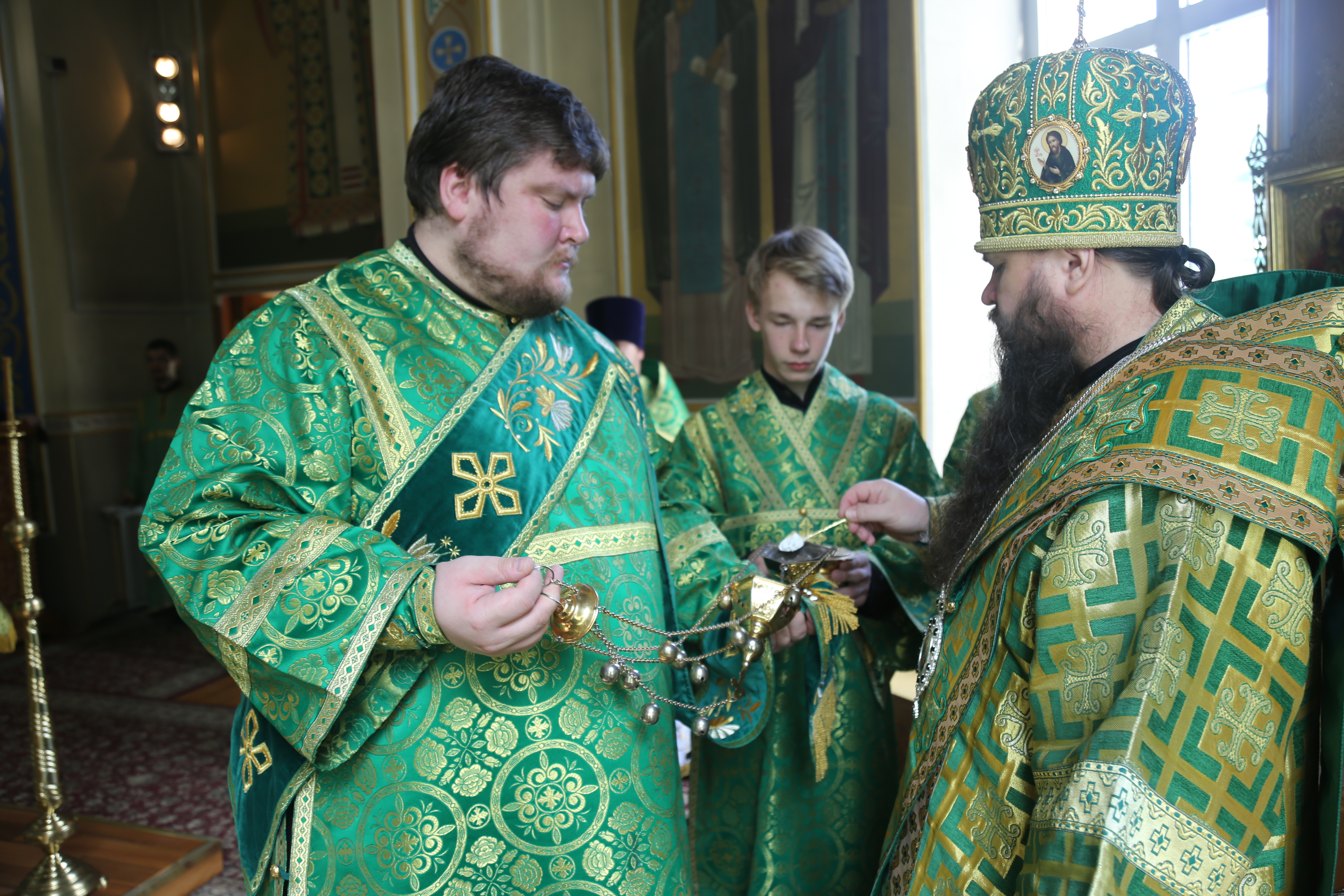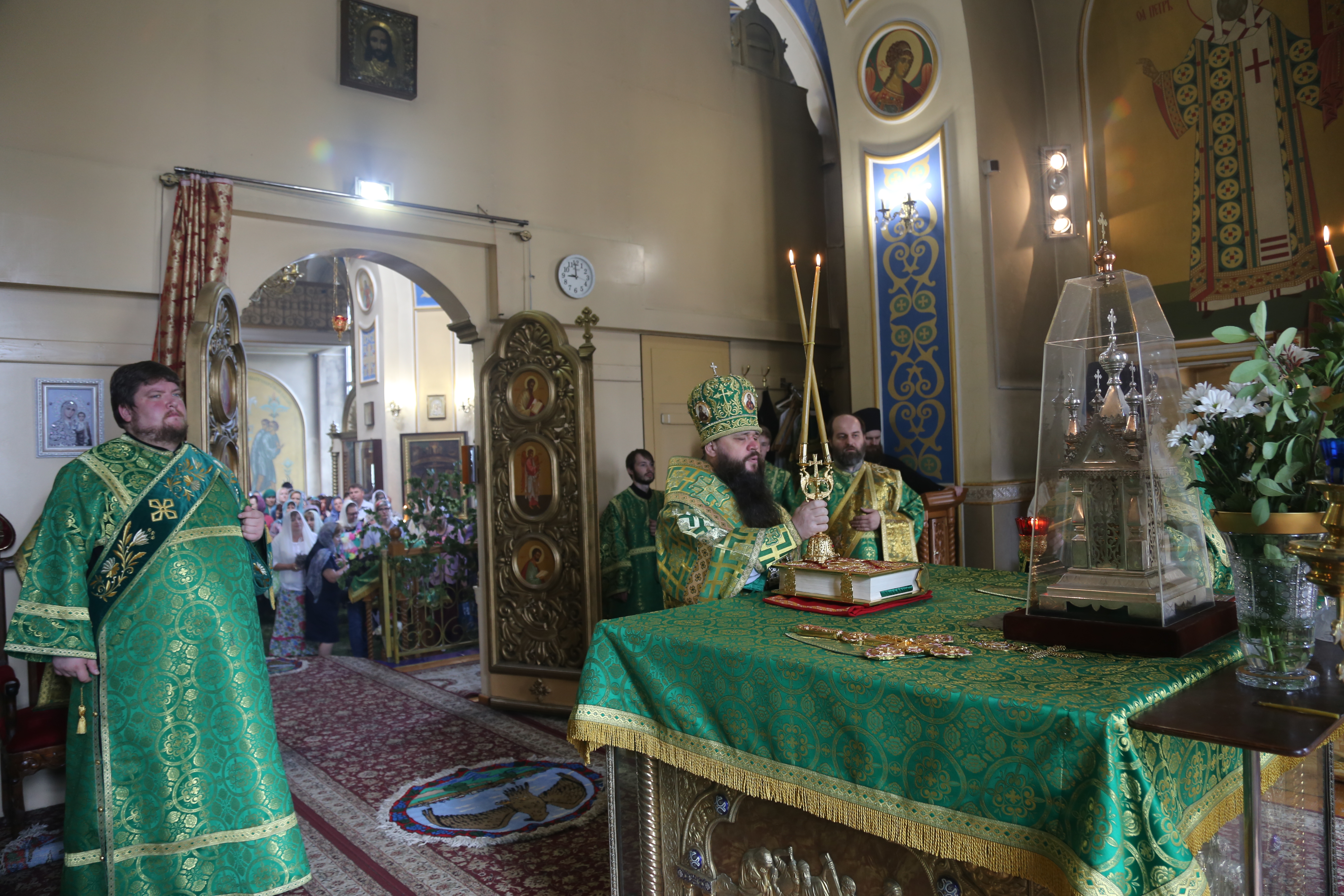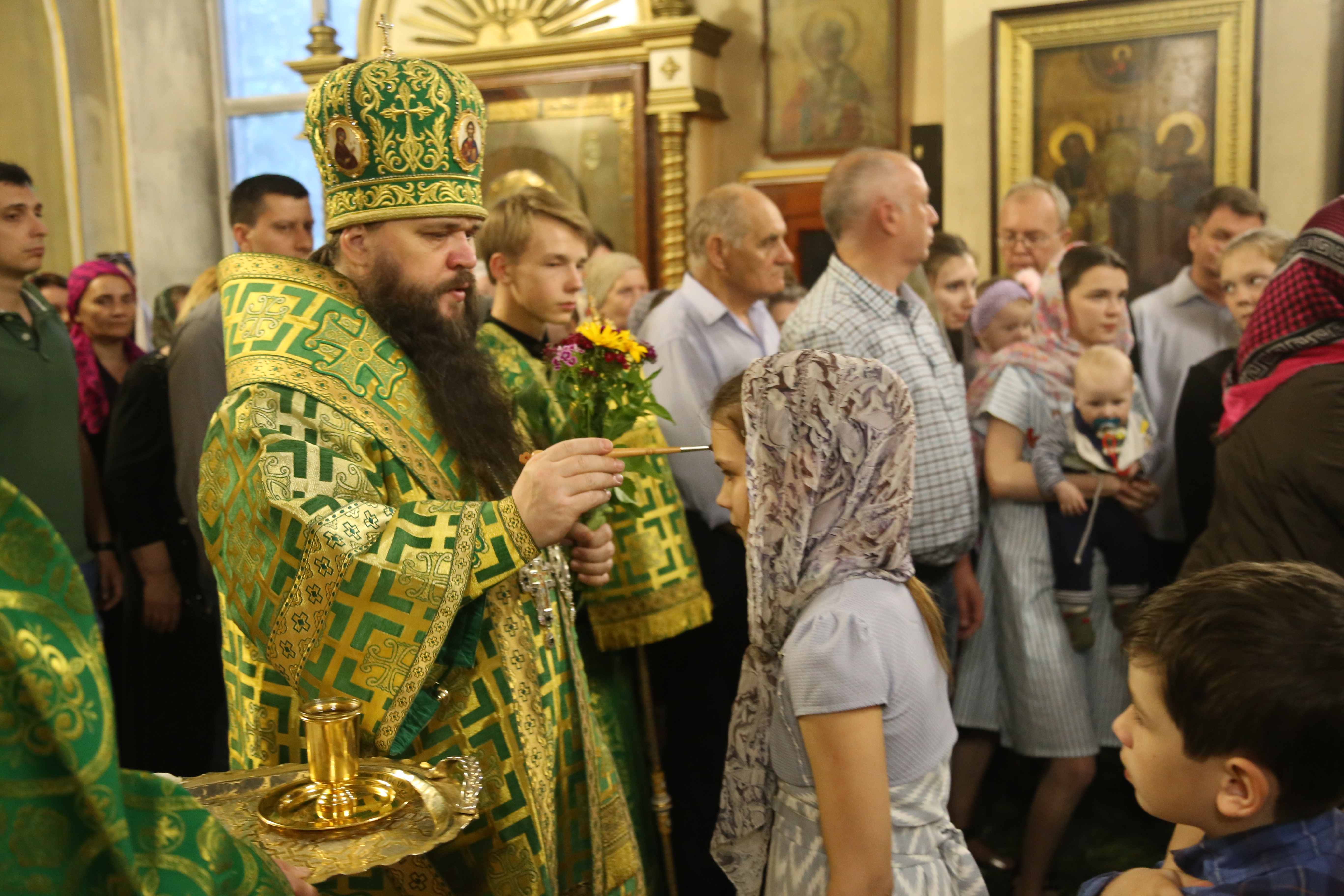 В заключение правящий архипастырь еще раз поздравил всех присутствующих с праздником Святой Пятидесятницы, а причастников — с принятием Святых Христовых Таин.