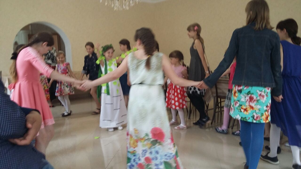 Затем ребята показали гостям мини-спектакль, прочитали стихи и исполнили народные запевки, посвященные празднику Святой Троицы. Также все вместе поучаствовали в старинной игре «Берёзка».