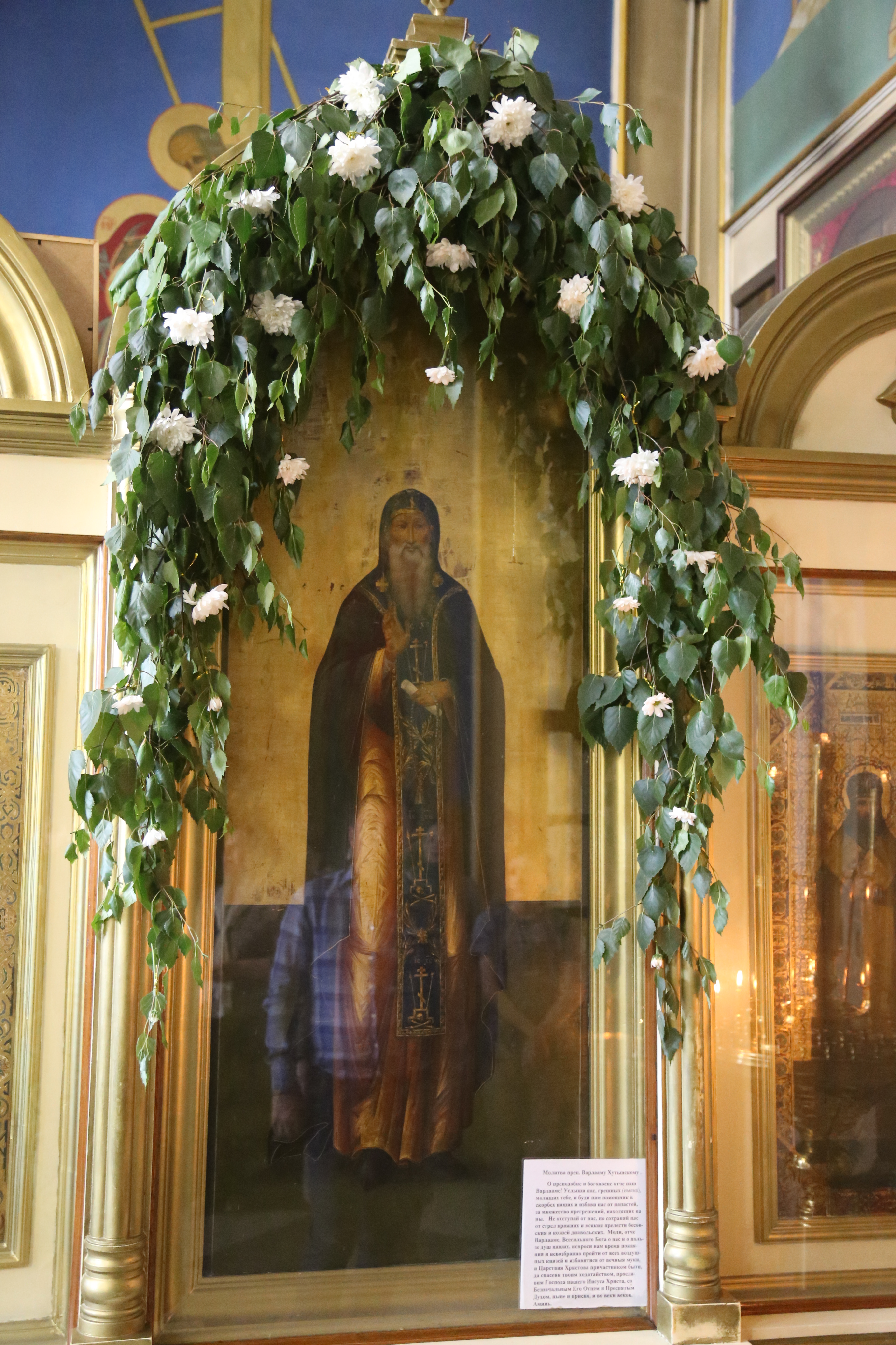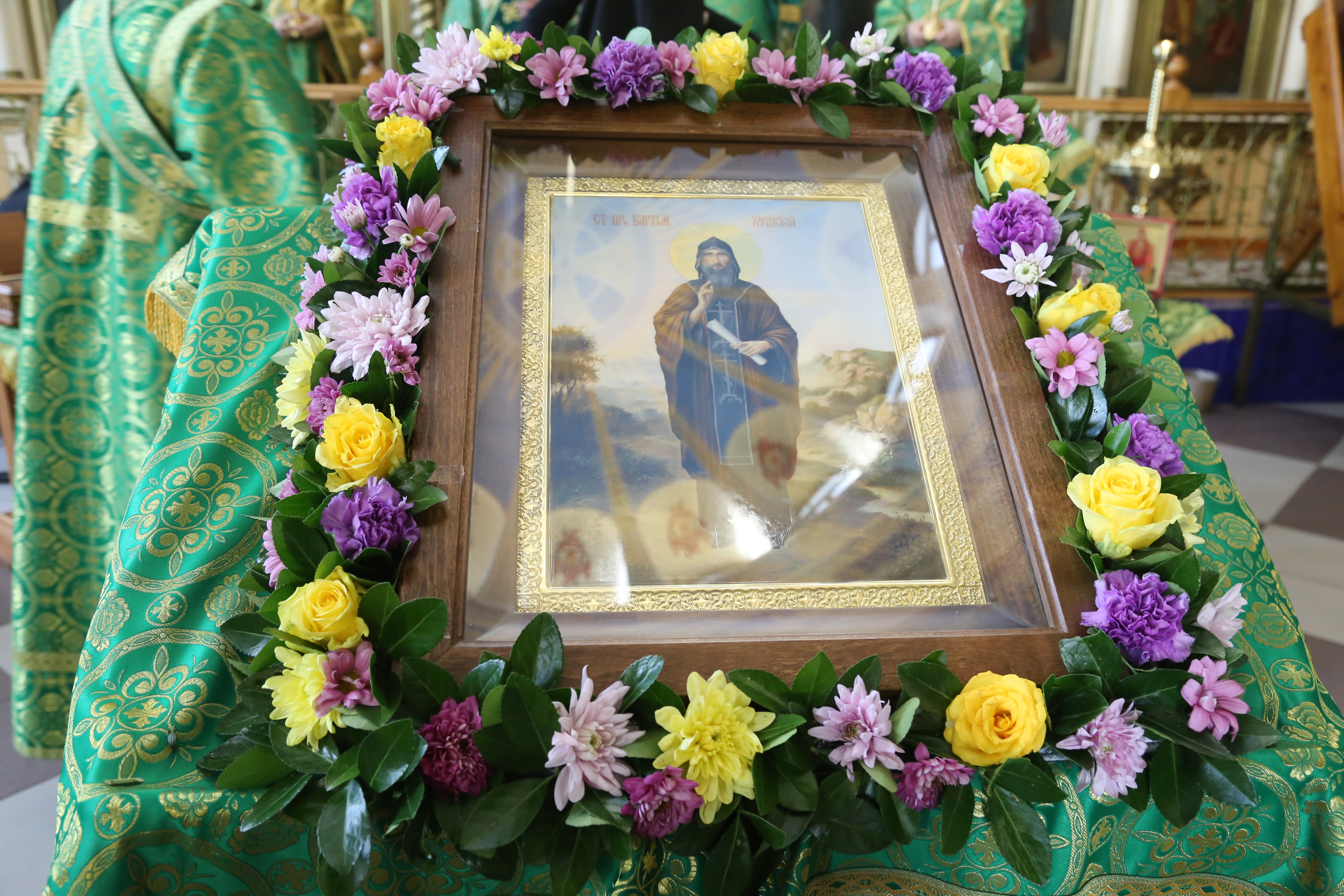 По заамвонной молитве была вознесена молитва святому преподобному Варлааму Хутынскому, совершено славление и провозглашены уставные многолетия.