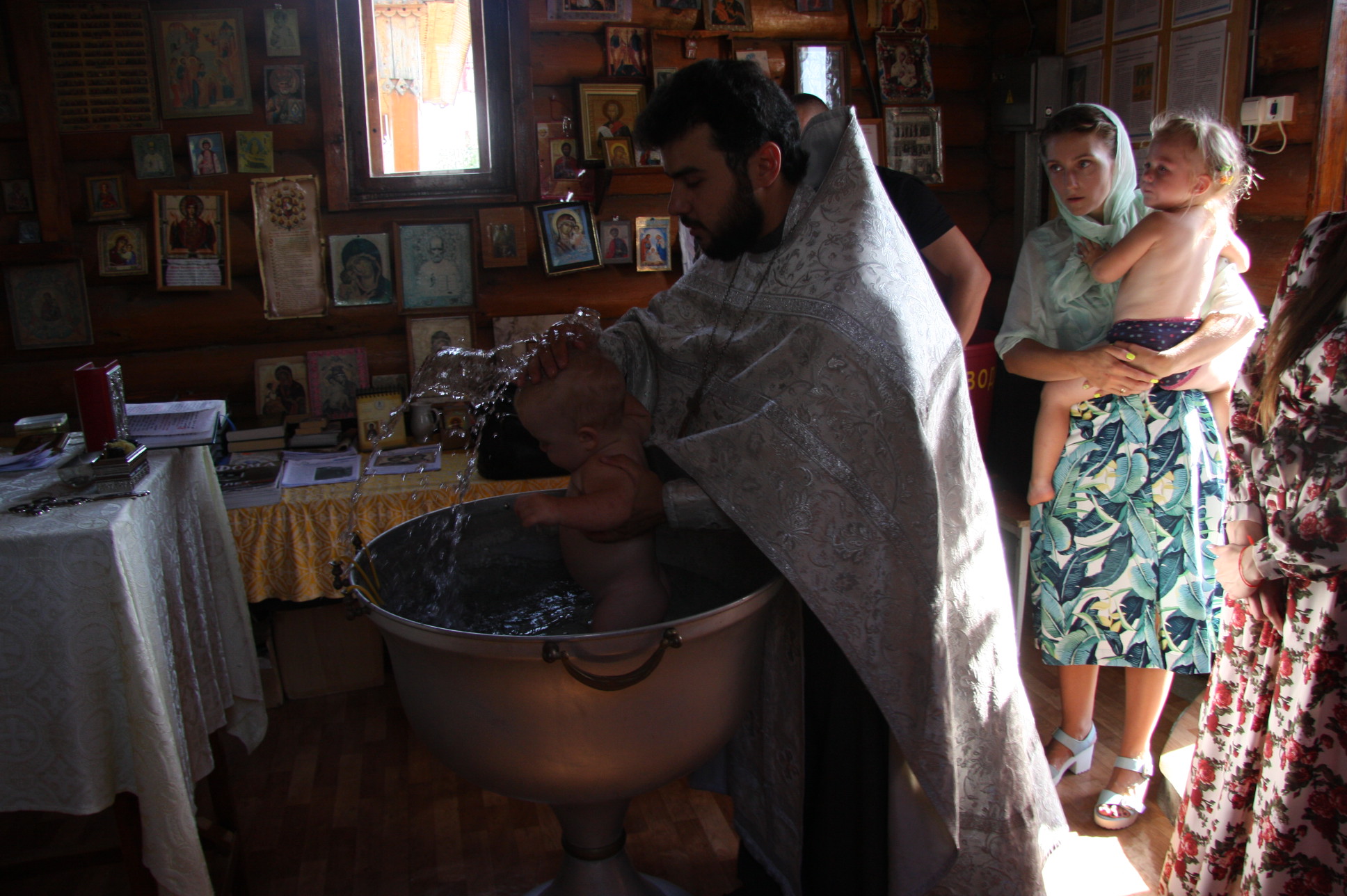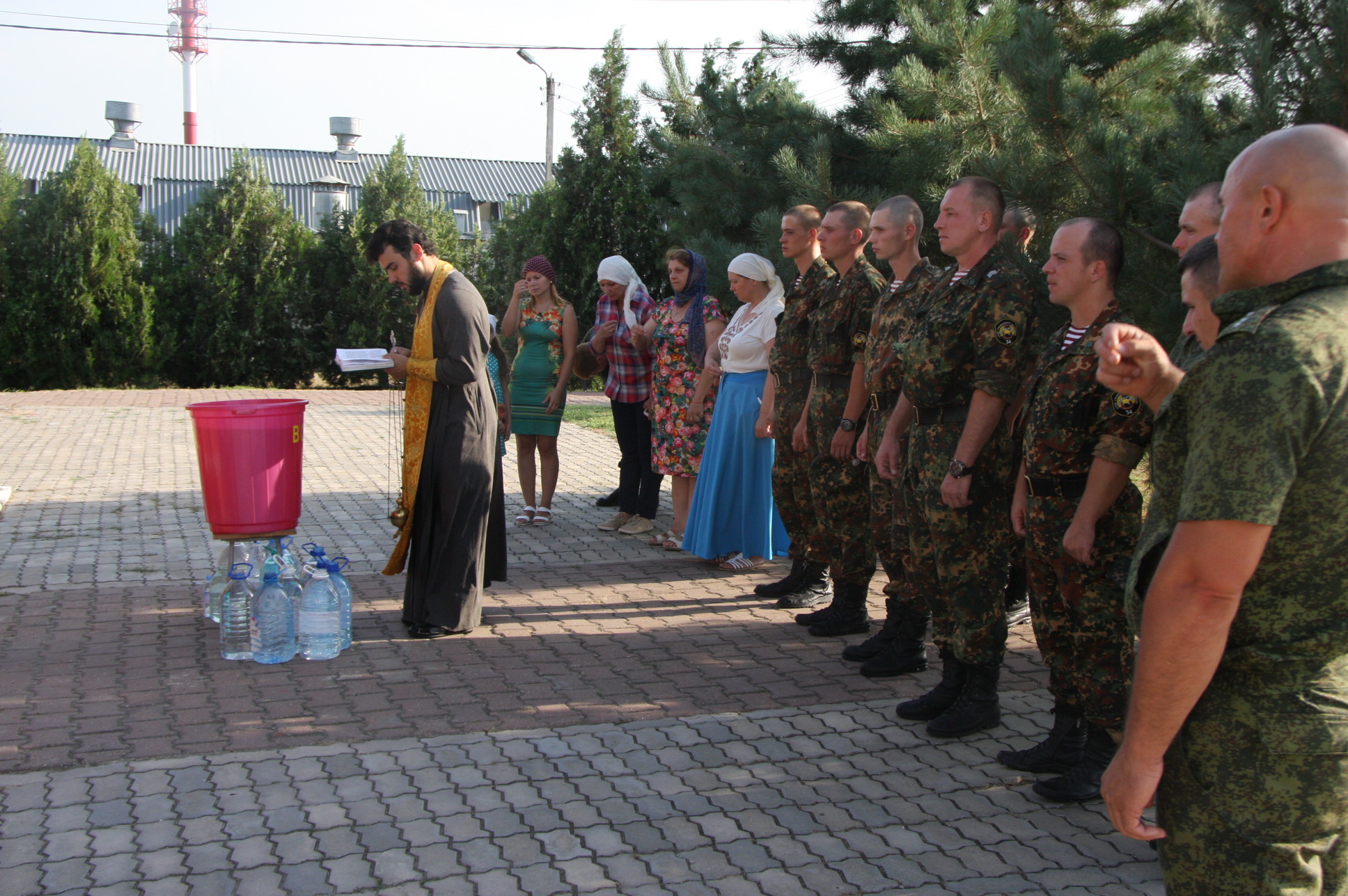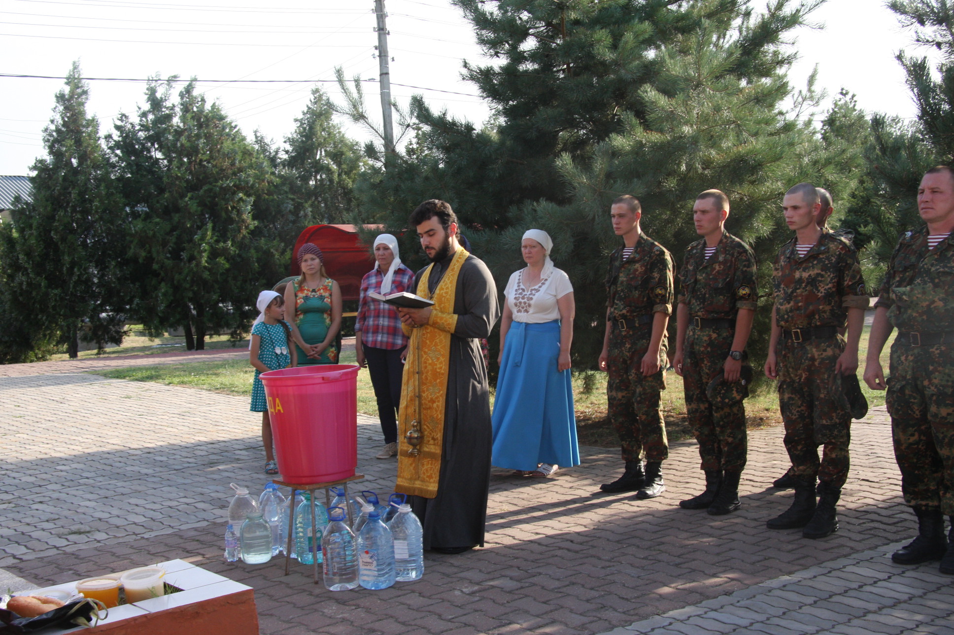 Священнослужитель совершил на территории части водосвятный молебен, после чего вознес молитву на благословение меда нового урожая и окропил его святой водой. Также отец Сергий совершил Таинство Крещения над детьми из семей военнослужащих, а затем освятил казарменные помещения отрядов спецназа.