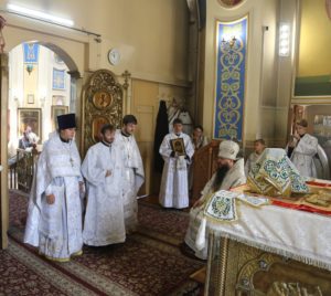 Его Преосвященству сослужили клирики кафедрального собора.