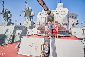 Ребята с удовольствием осмотрели порт с его многочисленными причалами, а кульминацией экскурсии стало посещение военного корабля. Капитан судна подробно рассказал о военном оснащении корабля, его мощности и предназначении.