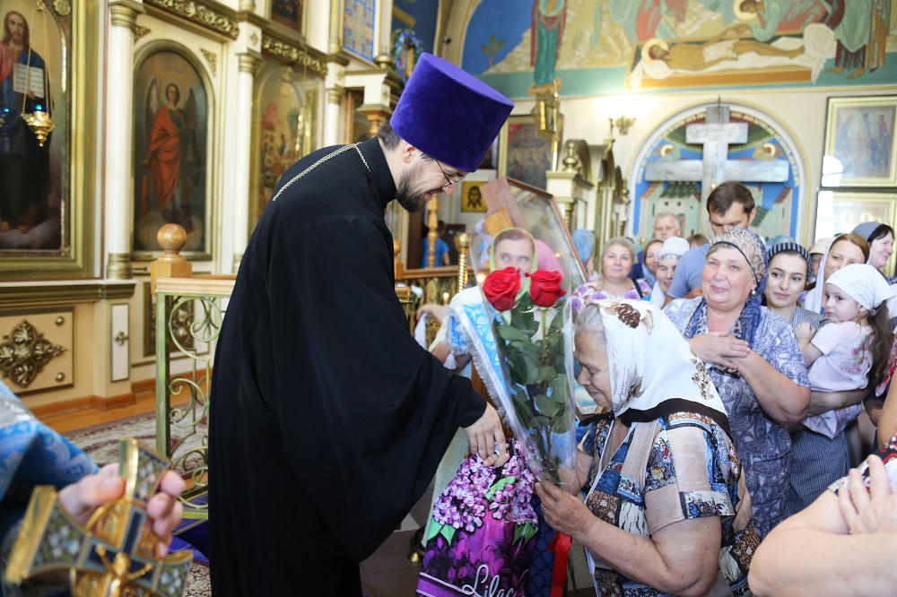 Затем отец Виталий от лица церковной общины поздравил с 85-летием одну из старейших прихожанок Свято-Успенского собора — рабу Божию Валентину Казанцеву.