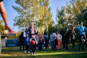 В этот день у ребят была возможность посоревноваться в ловкости не только со сверстниками, но и с родителями в увлекательной волейбольной игре.
