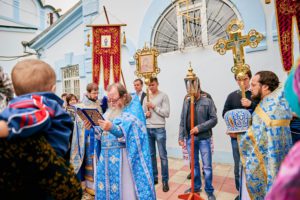 После молебного пения состоялся крестный ход вокруг храма и были провозглашены уставные многолетия.