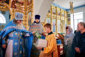 Также отец благочинный от лица епископа Варлаама преподнес в дар православному приходу комплект учебных пособий для детских воскресных школ. Иерей Виталий в своем слове подчеркнул то особое внимание, которое уделяет правящий архиерей вопросам развития катехизической и информационно-просветительской деятельности приходов епархии. Одним из ярких примеров чего послужило строительство нового здания под нужды воскресной школы Покровского храма, открытие которого намечено на ближайшее время.