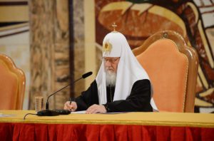 Затем Святейший Патриарх Кирилл ответил на вопросы участников съезда.