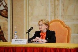 Далее участников съезда приветствовала министр здравоохранения РФ Вероника Скворцова.