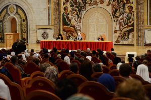 В рамках форума 26 октября 2017 года в Марфо-Мариинской обители милосердия делегаты приняли участие в Божественной литургии, которую возглавил председатель Синодального отдела по социальному служению епископ Орехово-Зуевский Пантелеимон.