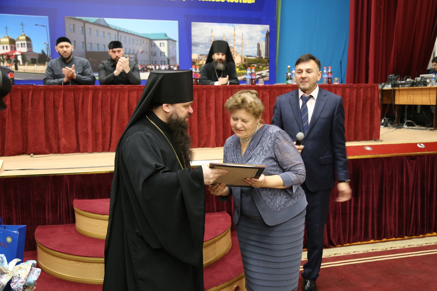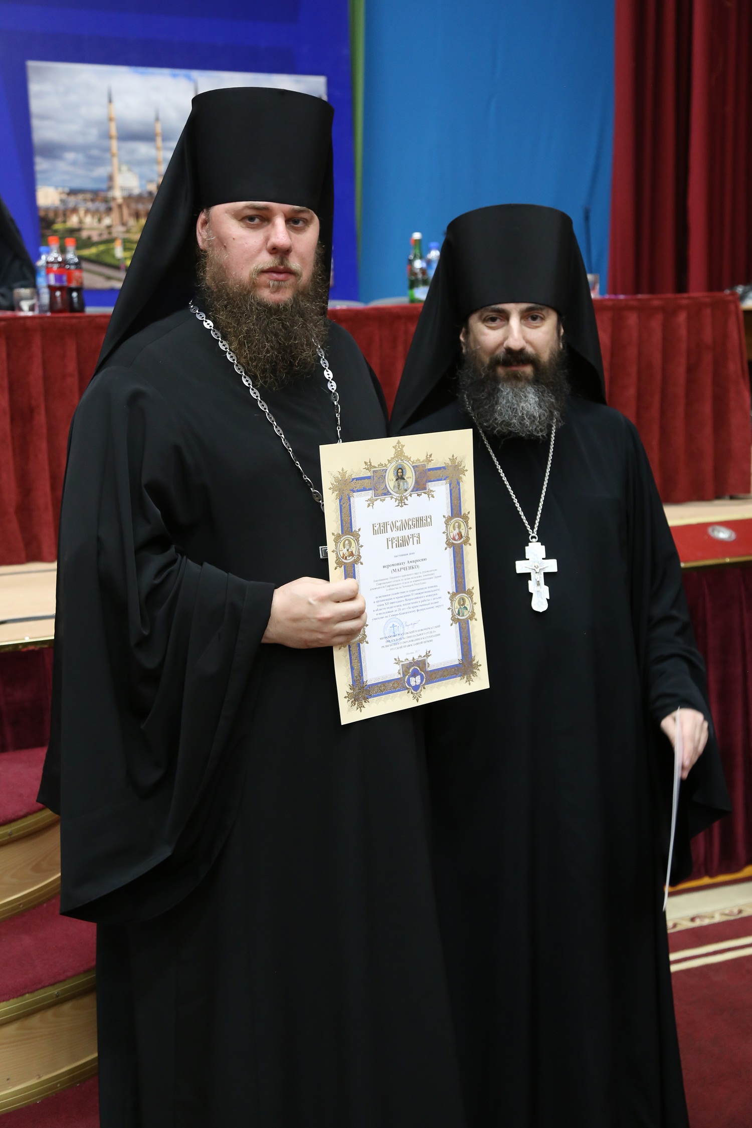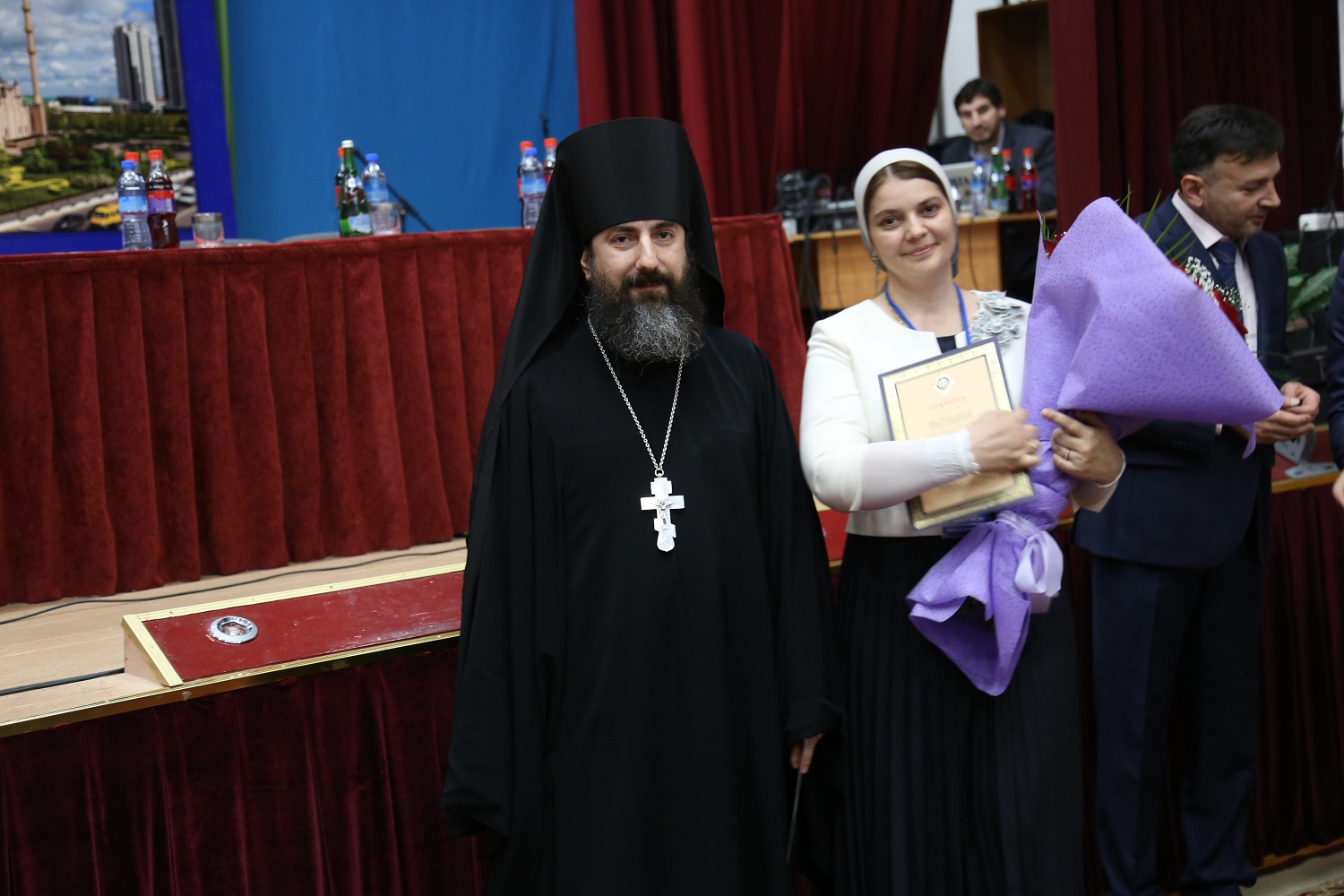 Благословенных грамот митрополита Меркурия удостоились министр образования и науки ЧР Исмаил Байханов, заместитель министра образования и науки ЧР ЧР Ахмед Усманов, руководитель епархиального ОРОиК иерей Виталий Тарасов, руководитель епархиального отдела по делам молодежи иеромонах Амвросий (Марченко), заместитель начальника Управления дополнительного образования, социальной защиты и поддержки детей и молодежи Минобрнауки Республики Дагестан Лариса Калмыкова.