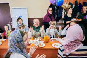 Стараниями родителей и педагогов был подготовлен праздничный стол со вкуснейшими пирогами. За чашкой чая ребята вместе со взрослыми посмотрели видео с выступлением ребят на II Республиканском фестивале русской народной сказки, где воспитанники воскресной школы вошли в число победителей.