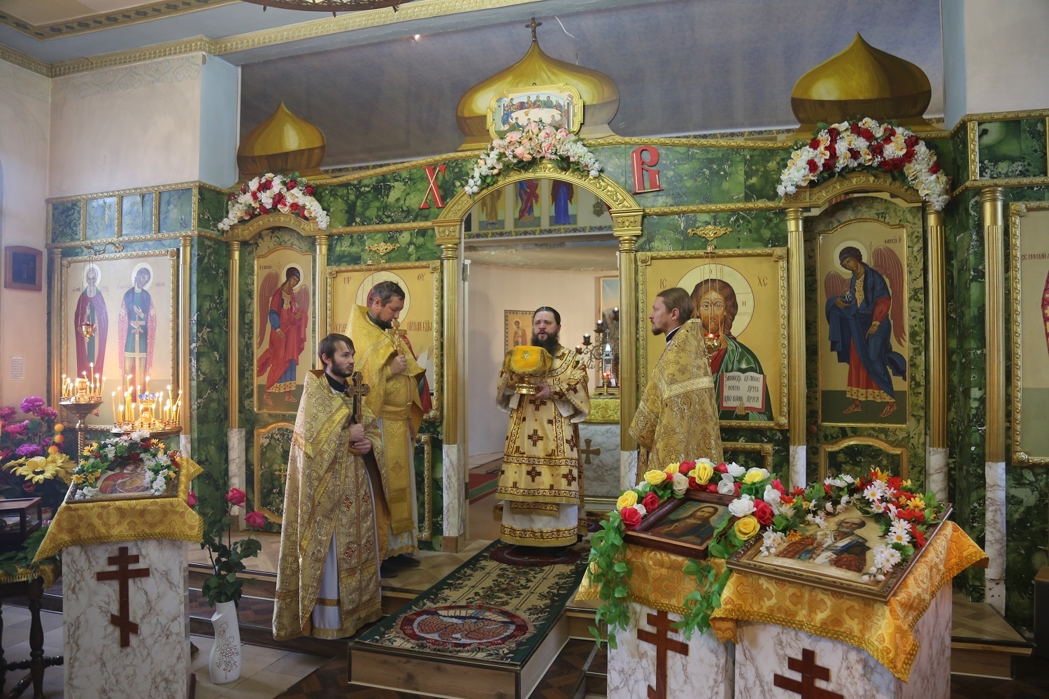 Перед началом Божественной литургии было совершено молебное пение с чтением акафиста святому угоднику Божию Николаю Чудотворцу.