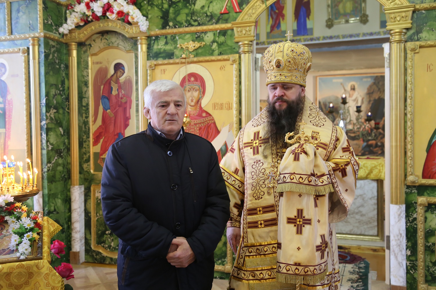 На богослужении присутствовали глава Кизляра Александр Шувалов и глава Кизлярского района Александр Погорелов.