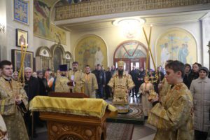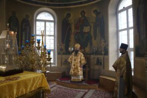 По окончании богослужения владыка Варлаам совершил молебное пение на новолетие, после чего поздравил всех присутствующих с наступающим 2018-м годом.