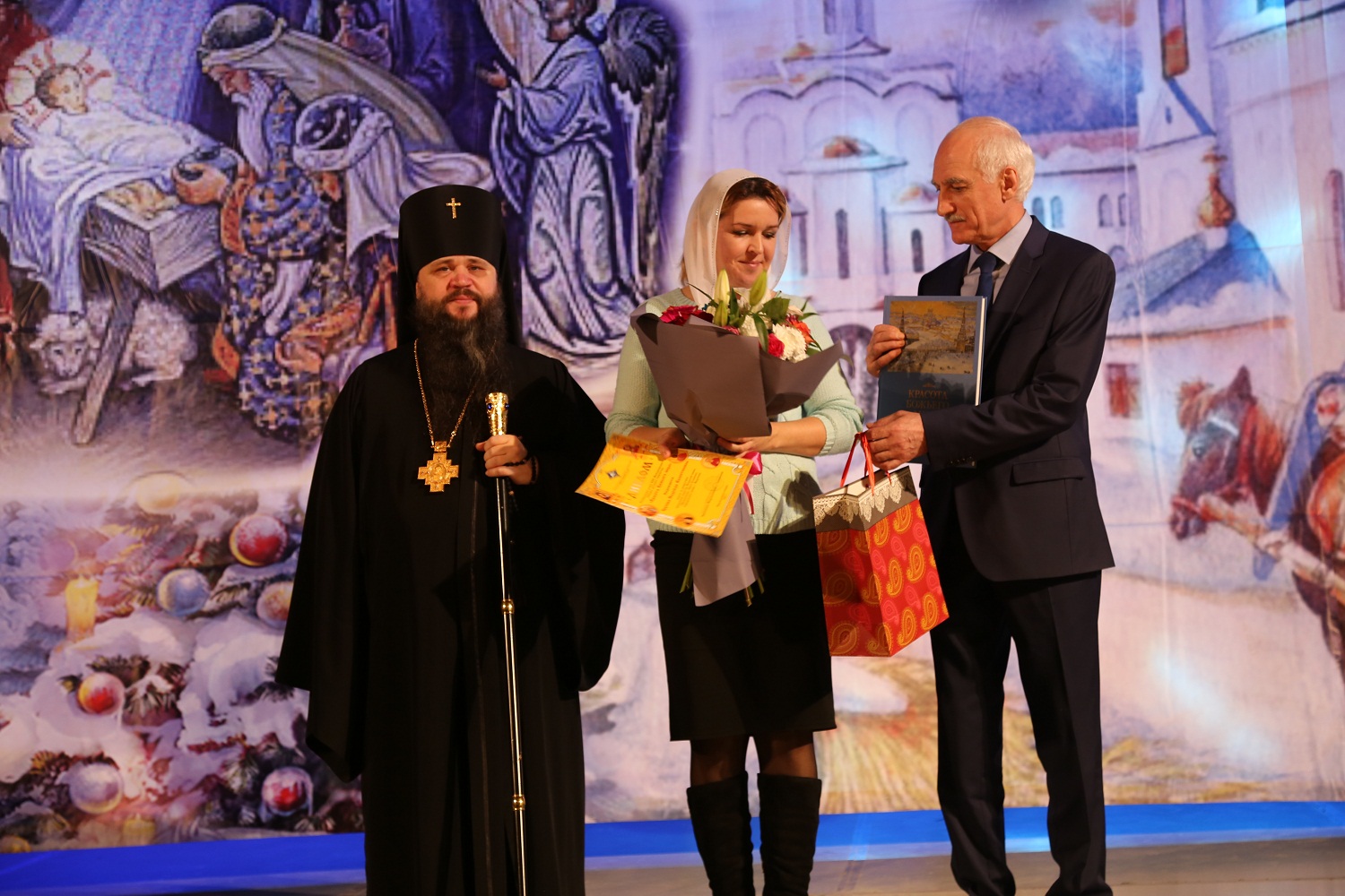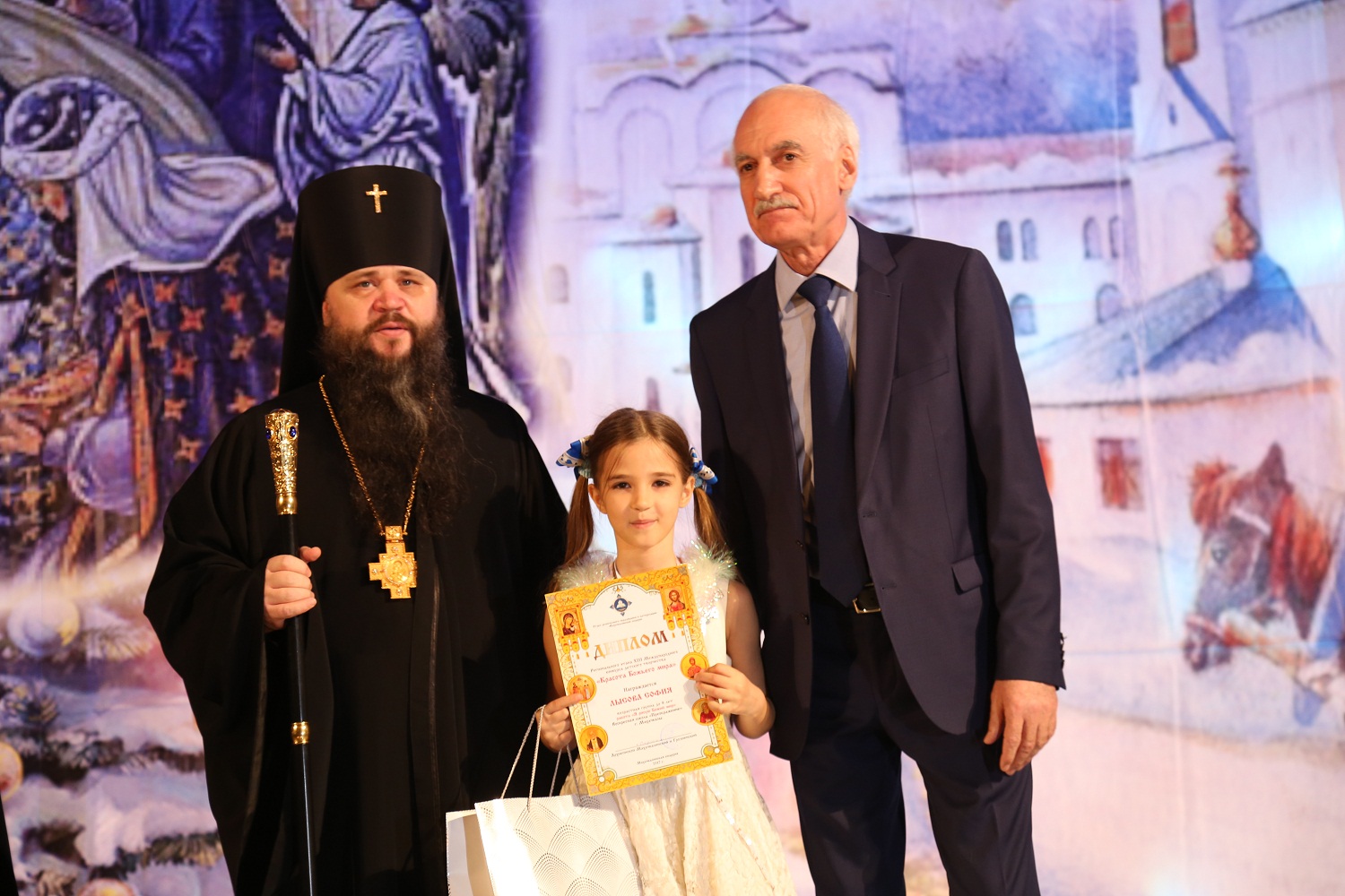 Далее состоялась церемония награждения победителей региональных и российских этапов XIII Международного конкурса детского творчества «Красота Божьего мира». Также были награждены победители регионального этапа конкурса детского творчества, проводимого в рамках празднования 100-летнего юбилея Патриаршей интронизации святителя Московского Тихона и Всероссийского Церковного Собора.
