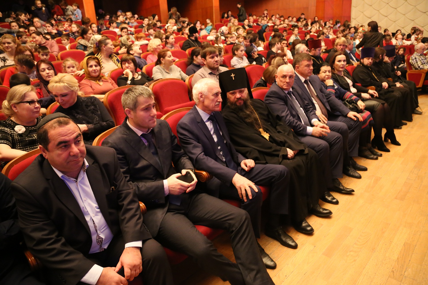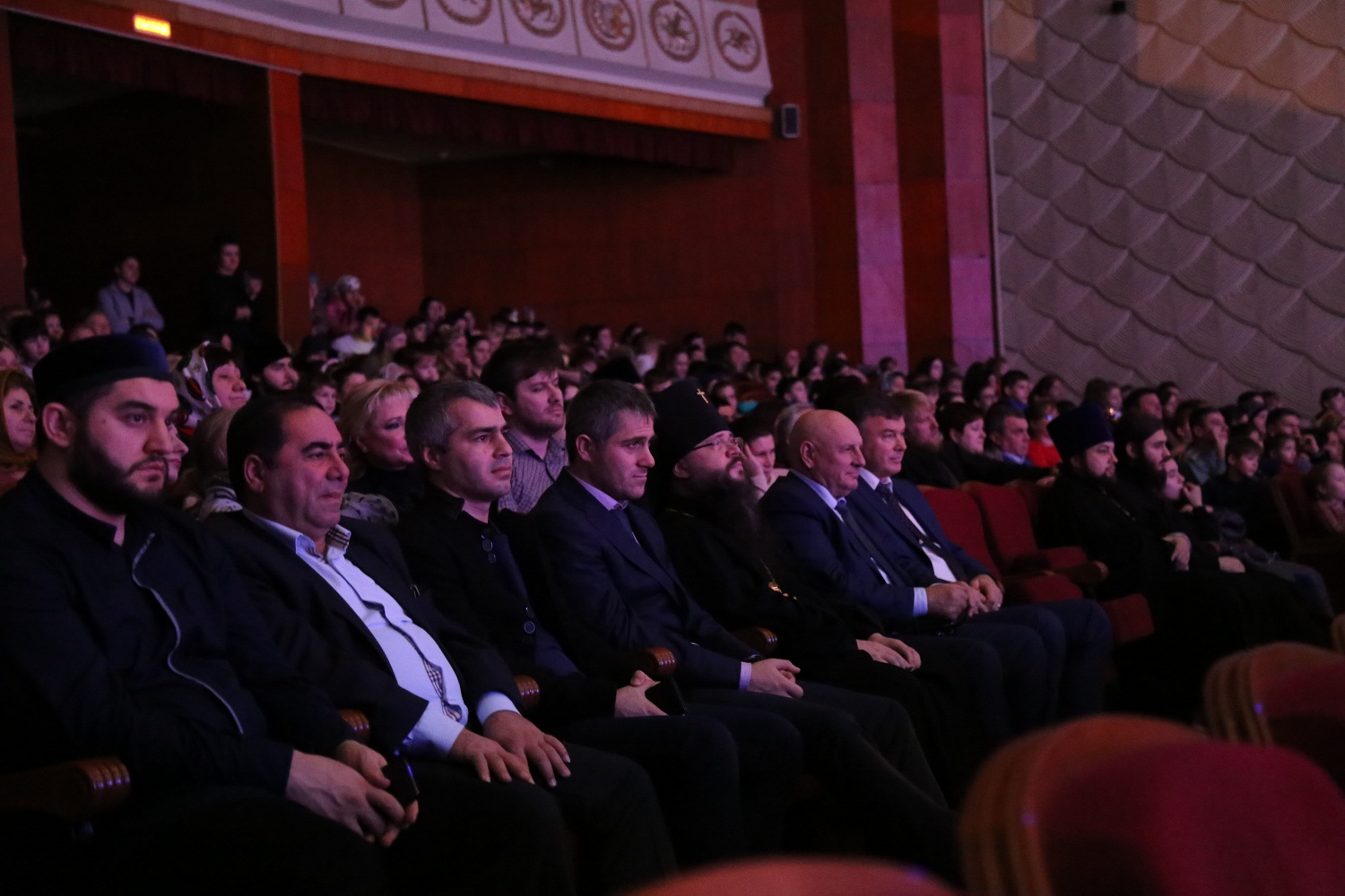 В фойе театра гостей встречали хор русской песни «Волна», образцовый детский фольклорный ансамбль «Лукоморье» и военный духовой оркестр. На благотворительной ярмарке можно было приобрести поделки воспитанников воскресной школы «Преображение» при Свято-Успенском кафедральном соборе г. Махачкалы и сладкую выпечку, приготовленную руками ребят в рамках акции «Белый цветок».