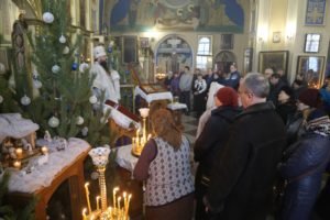 Его Высокопреосвященству сослужили клирики кафедрального собора.