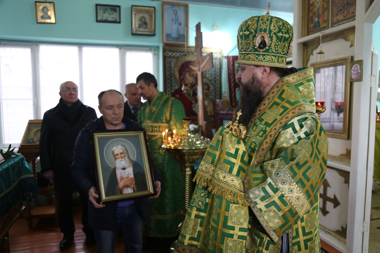 Правящий архипастырь поблагодарил градоначальника за внимание к нуждам православной общины Избербаша. В свою очередь отец настоятель поздравил владыку с праздником и преподнес в дар икону преподобного Серафима Саровского.