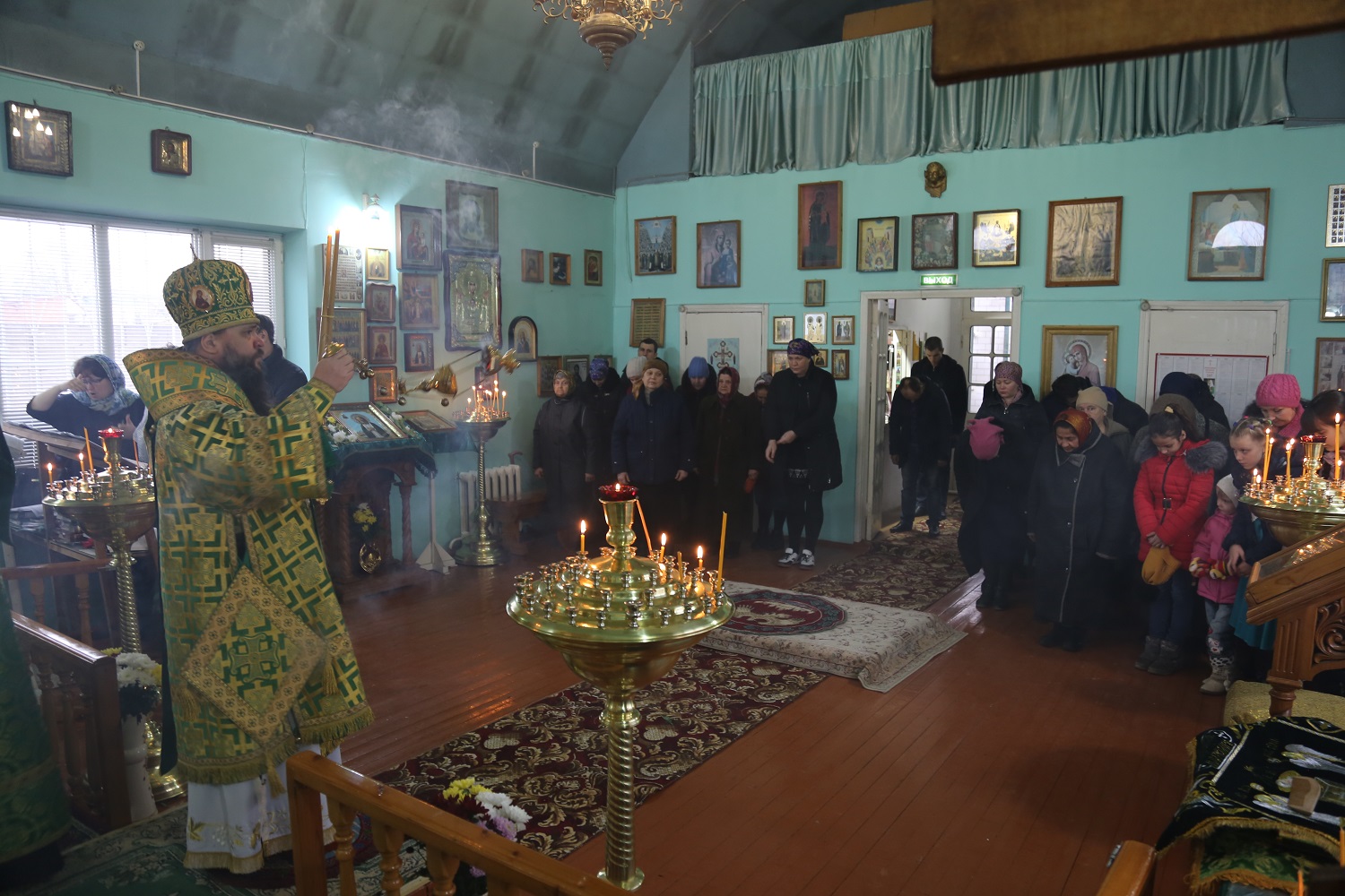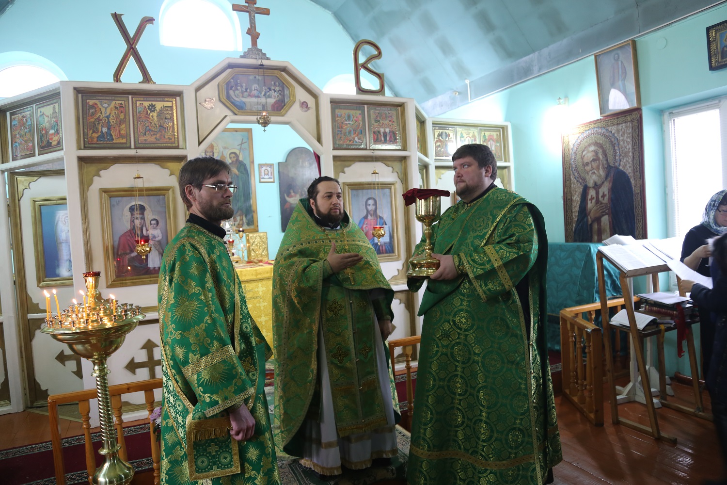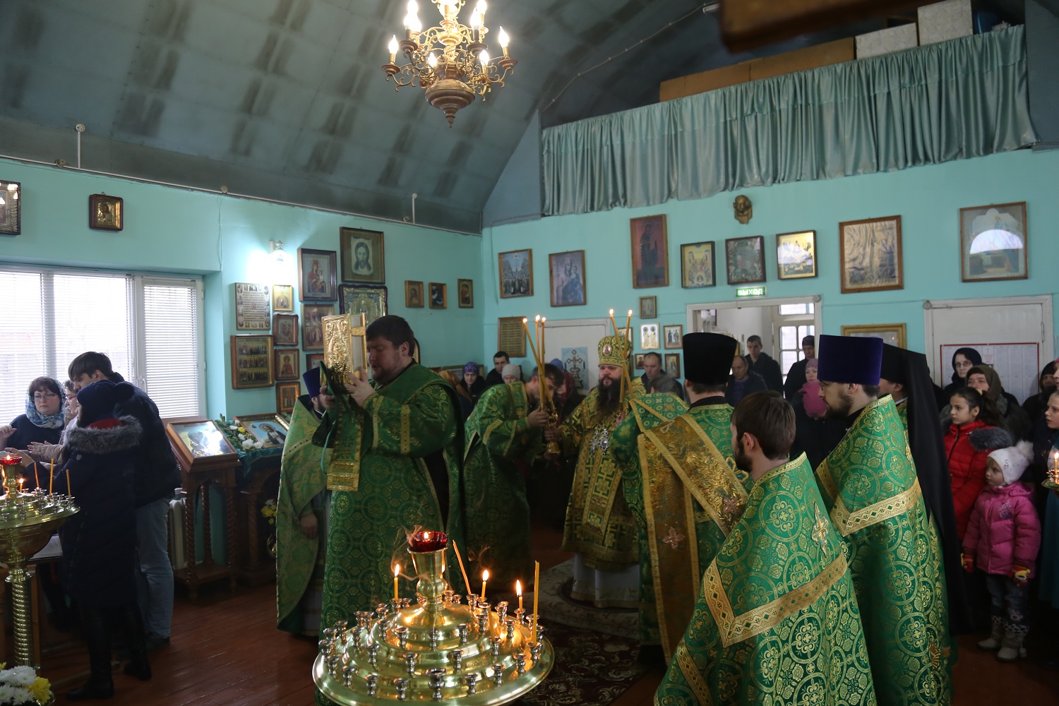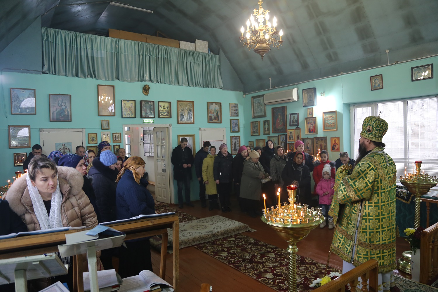 За богослужением пел архиерейский хор Махачкалинской епархии под управлением Натальи Макеевой.