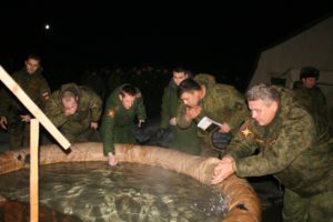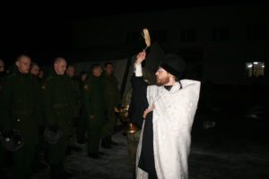 Священнослужитель совершил на территории части чин великого освящения воды и благословил купель, после чего все желающие смогли совершить традиционные крещенские купания.