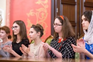 26 января председатель Синодального отдела религиозного образования и катехизации митрополит Ростовский и Новочеркасский Меркурий в Красном зале Соборного Храма Христа Спасителя встретился с лауреатами Международного конкурса детского творчества «Красота Божьего мира» и конкурса детского творчества «100-летие Патриаршей интронизации святителя Московского Тихона».