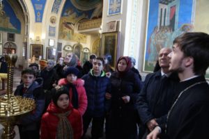 Затем школьники посетили Свято-Успенский кафедральный собор, где по благословению архиепископа Махачкалинского и Грозненского Варлаама экскурсию для ребят провел штатный клирик собора иерей Сергий Никифоров. Священнослужитель рассказал об истории создания храма, его богослужебной жизни, а также о находящихся в нем святынях.
