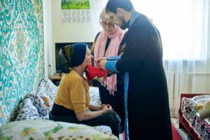 Здесь православный священнослужитель совершил Таинства Исповеди и Причастия для всех желающих, которые в силу физического состояния не могут посетить храм Божий. В этот день 13 человек приобщились Святых Христовых Таин.