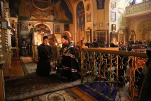 Затем правящий архиерей, совершив коленопреклонную молитву, испросил прощения у духовенства и мирян.
