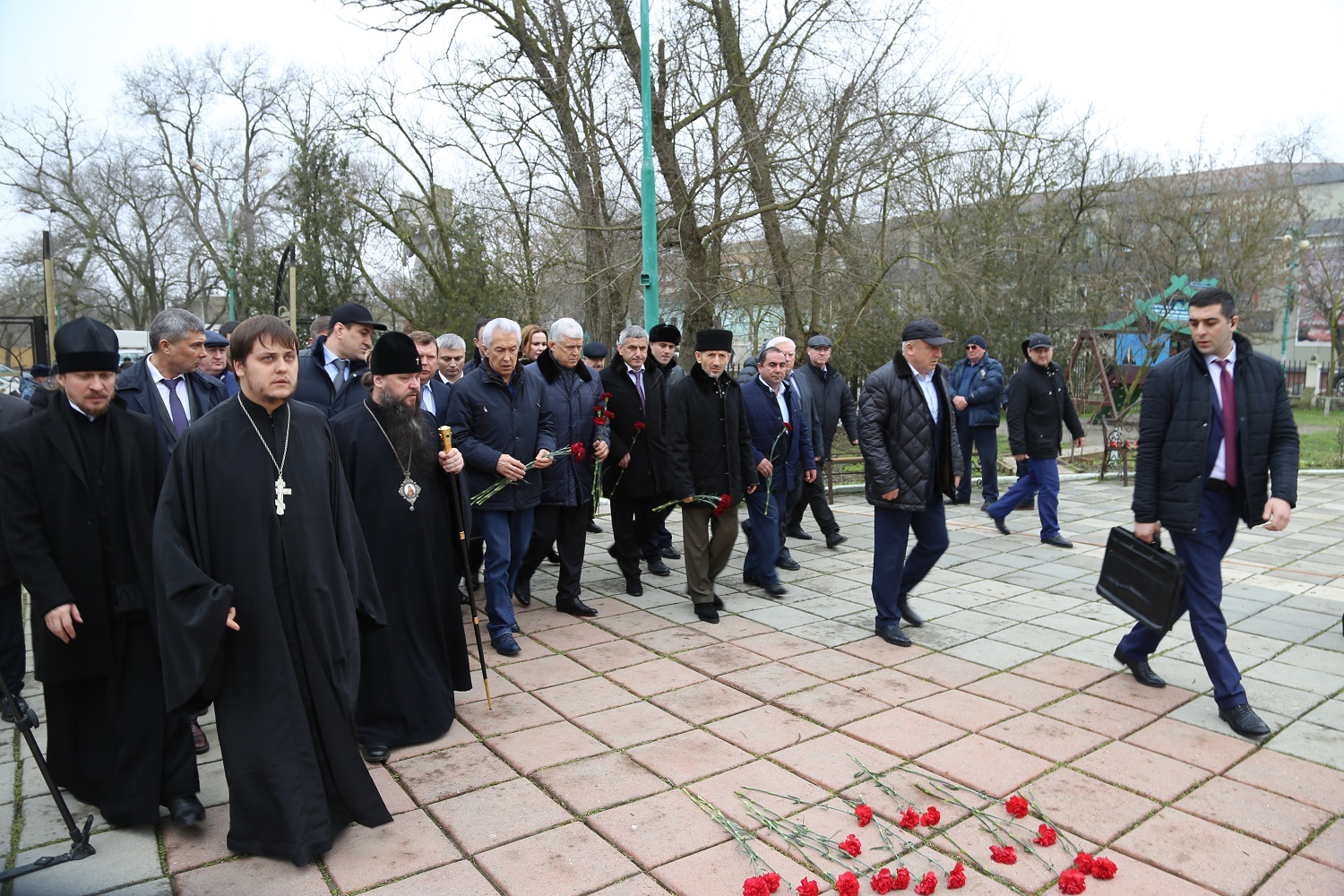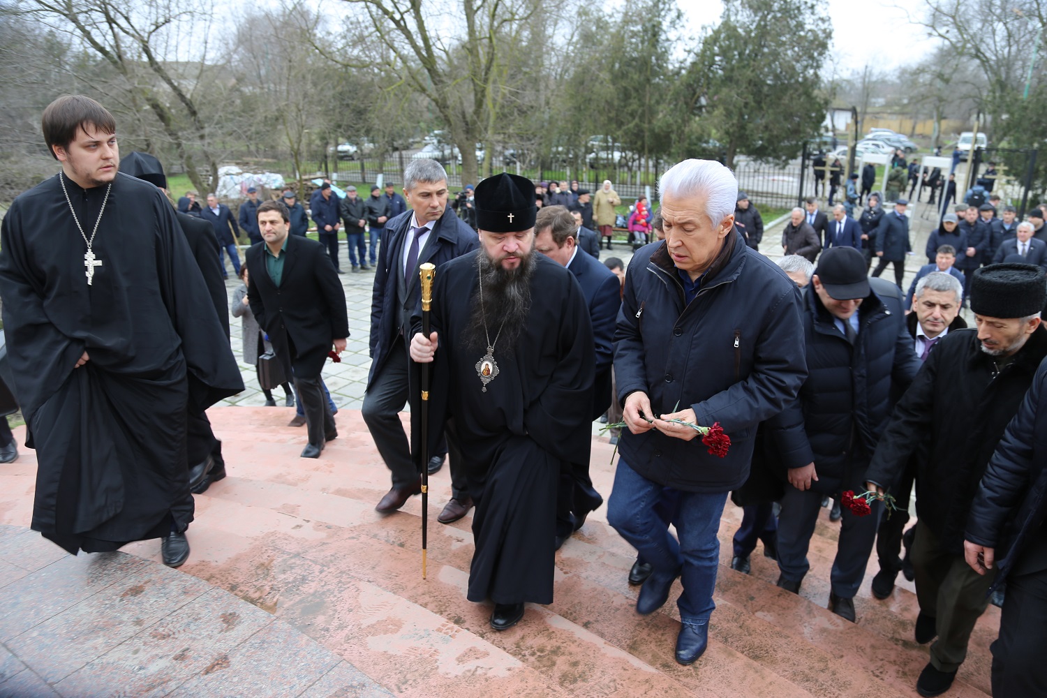 Владимир Васильев и лидеры религиозных общин Дагестана возложили цветы к месту трагедии в г. Кизляре
