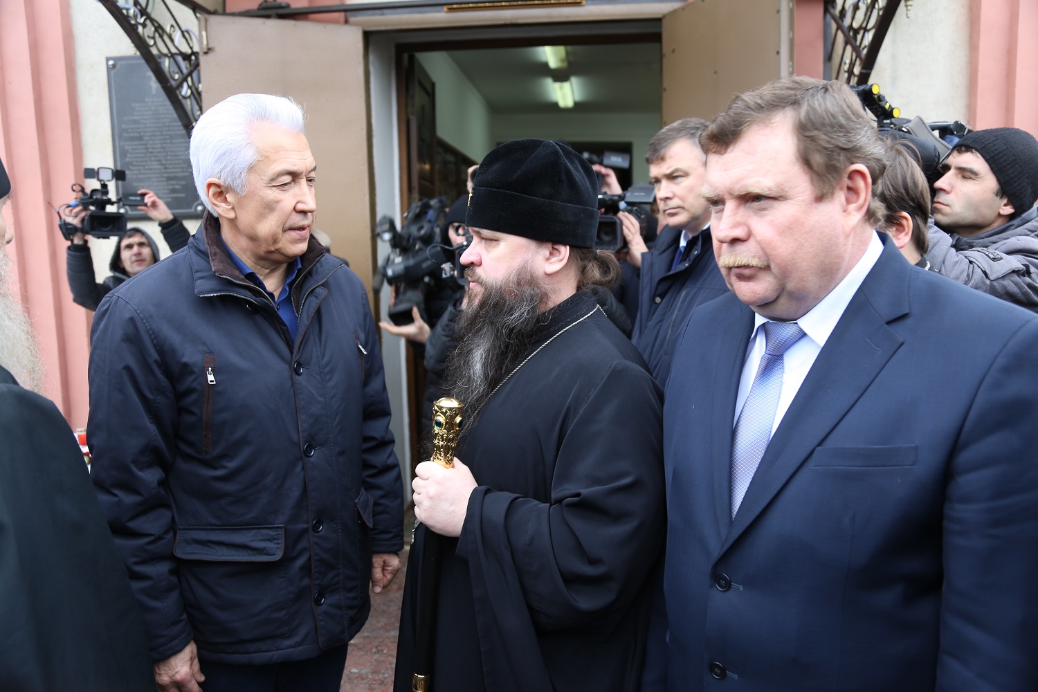 Главу республики встречал архиепископ Махачкалинский и Грозненский Варлаам.