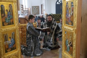 По окончании Литургии, преклонив колени, владыка Варлаам вознес молитву на начало Святой Четыредесятницы.