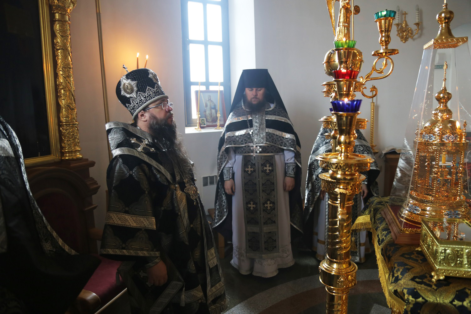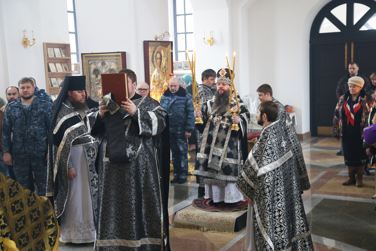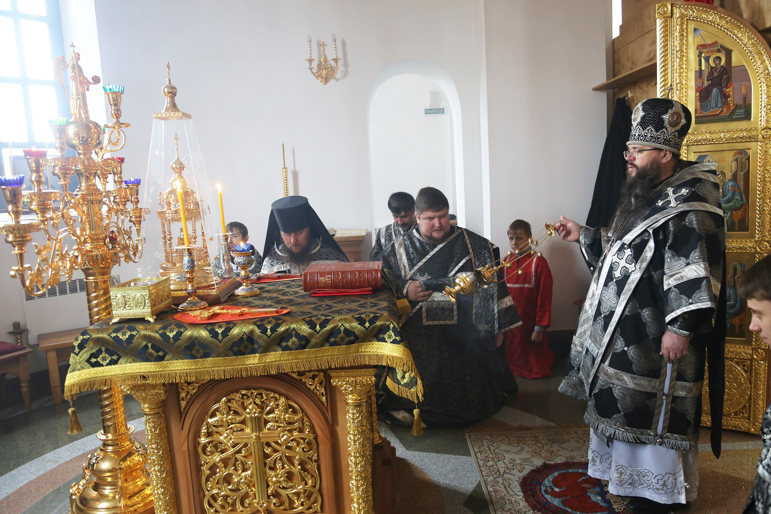 По окончании Литургии, преклонив колени, владыка Варлаам вознес молитву на начало Святой Четыредесятницы.