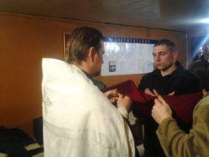 Отец Валерий совершил Таинство исповеди для военнослужащих, после чего они причастились Святых Христовых Таин.