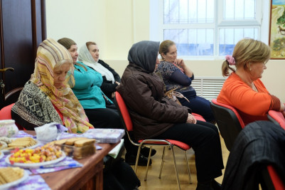 Специально для встречи постоянный гость и участник многих мероприятий Центра Ольга Куделина испекла постный пирог с капустой, который гости с удовольствием попробовали за чайным столом, подготовленном коллективом РЦРЯиК.