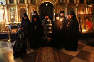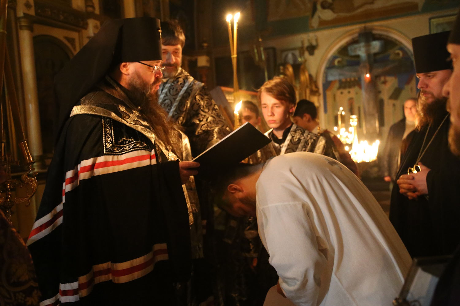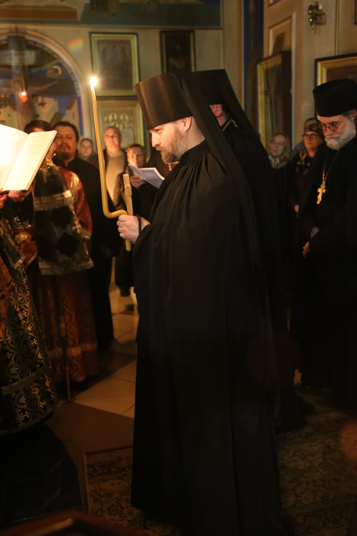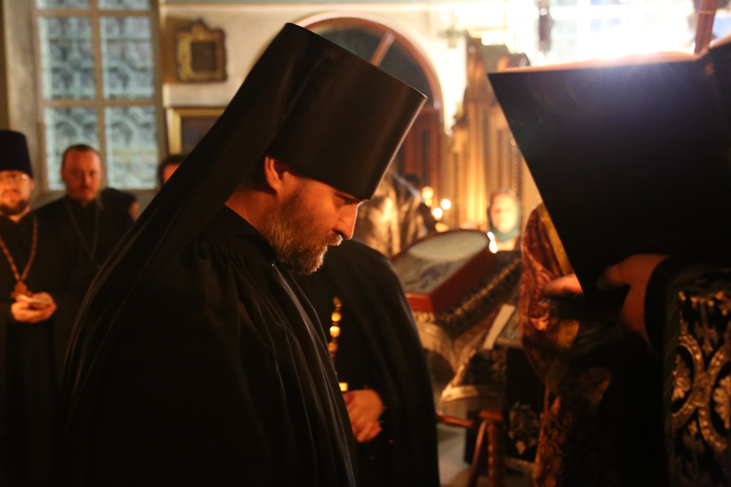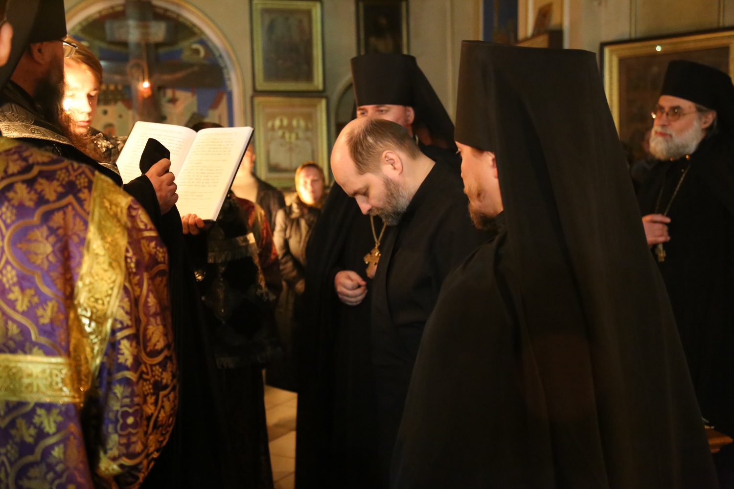 После архиерейского напутствия духовенство и прихожане, молившиеся в храме, поздравили иеродиакона Лазаря с принятием монашеских обетов.